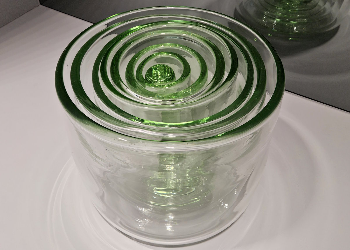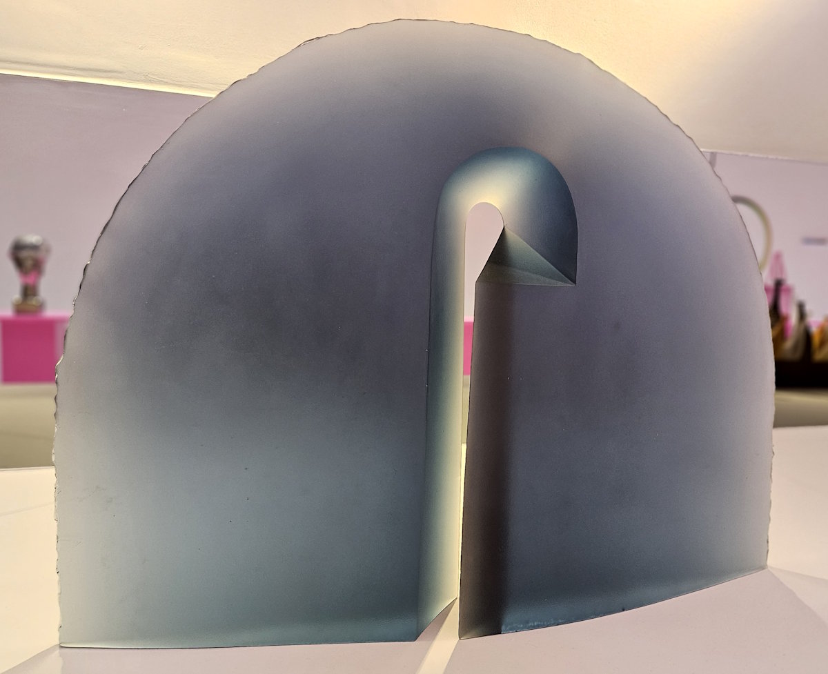 Mark Bradforst (*1961) ist mit »Borsa« vertreten, der gläsernen Nachbildung einer Plastik-Tragetasche. Die eingravierten Striche verweisen darauf, dass Häftlinge in italienischen Gefängnissen Einkaufstaschen herstellen. Von Stanislav Libenský (1921 ‒ 2002) und Jaroslava Brychtová (1924 ‒ 2020) stammt »Arcus I« aus blaugrauem Glas.