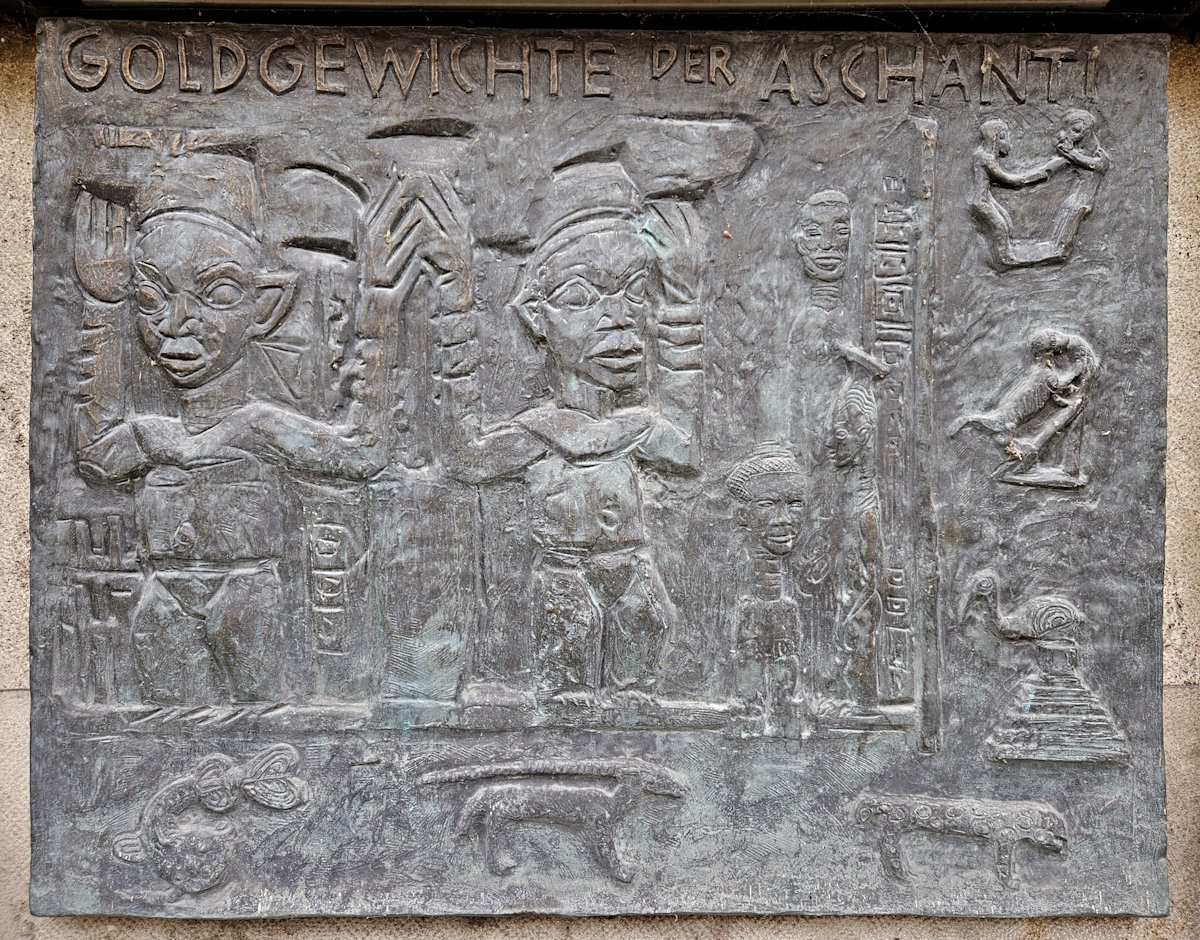 Am Gebäude der Deutschen Bank am Promenadeplatz 15 sind dreizehn Reliefplatten mit Motiven von historischen Zahlungsmitteln angebracht.
