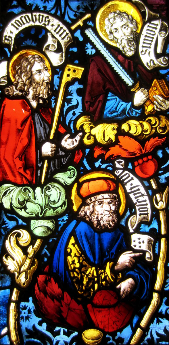 Auf den beiden um 1490/1500 nach Entwürfen der Werkstatt von Michael Wolgemut gestalteten Kirchenfenstern aus der Nürnberger Lorenzkirche sind Alphäus und Maria Kleophas sowie Joseph Justus, Jakobus d. J. und Simon dargestellt. ‒ Die beiden vor 1513 entstandenen Chorfenster aus der Kartause Prüll in München zeigen Herzog Albrecht IV. und den hl. Johannes sowie Herzog Wilhelm IV. und den hl. Bartholomäus.