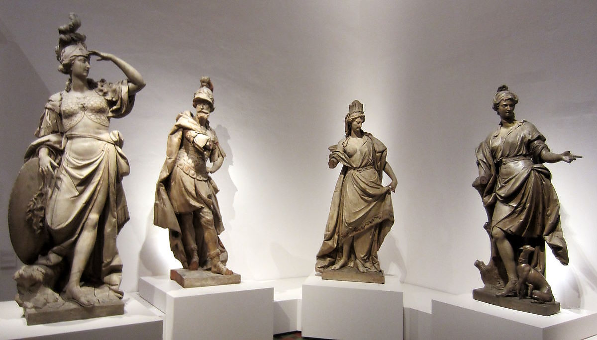 Der Rokoko-Bildhauer Johann Baptist Straub (1704 – 1784) schuf das Ensemble neun griechischer Götterfiguren 1772 für Maximilian Emanuel Graf von Toerring-Jettenbach (1715 – 1773), den Münchner Hofkammerpräsidenten und Präsidenten der Bayerischen Akademie der Wissenschaften, für dessen Palais in der Residenzstraße. Sieben der 2.59 Meter hohen Statuen aus Lindenholz stehen im Saal 43, zwei weitere im Treppenhaus.