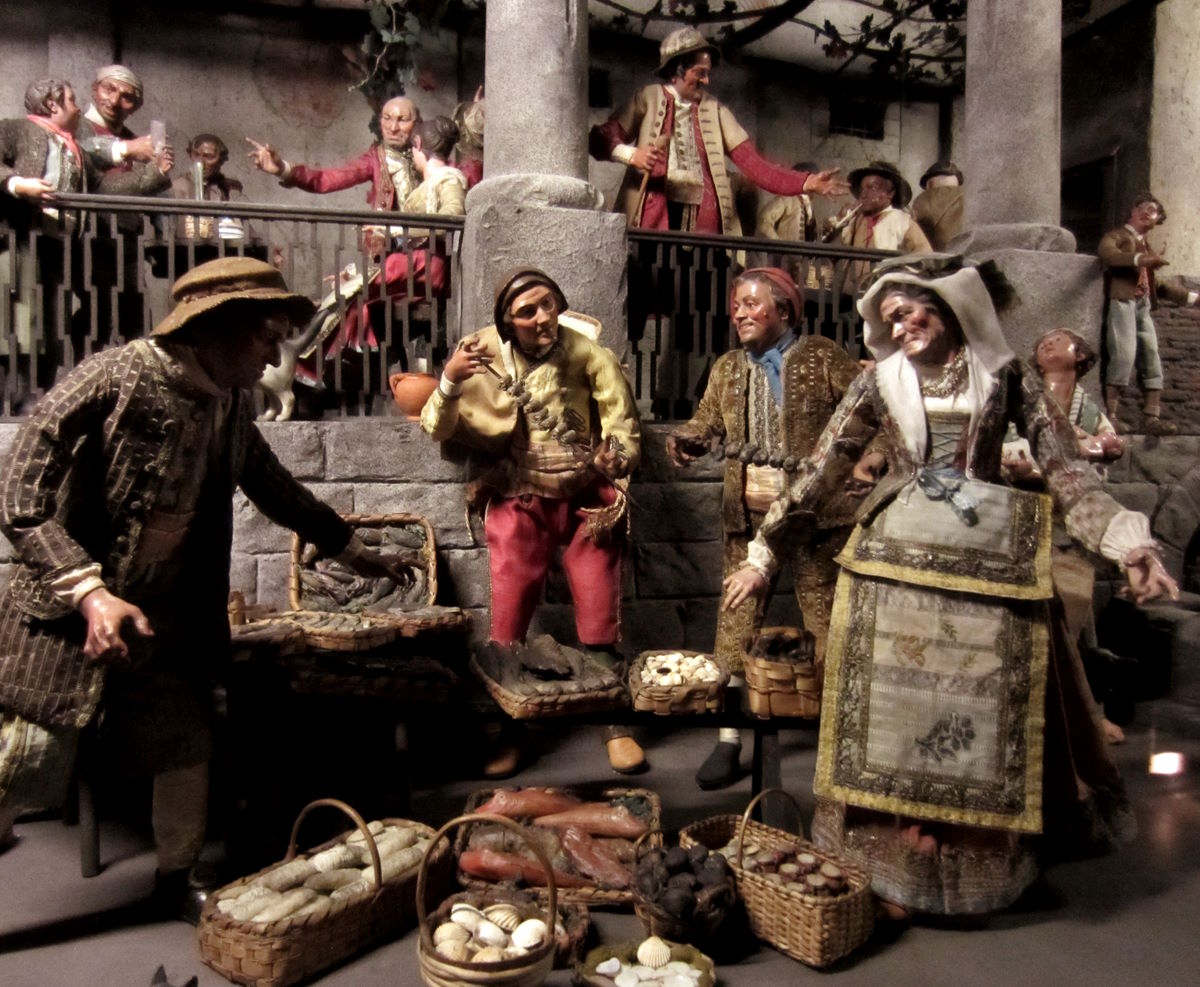 Die neapolitanische Krippe »Straße in Neapel mit Marktszenen« stammt aus der zweiten Hälfte des 18. Jahrhunderts.
