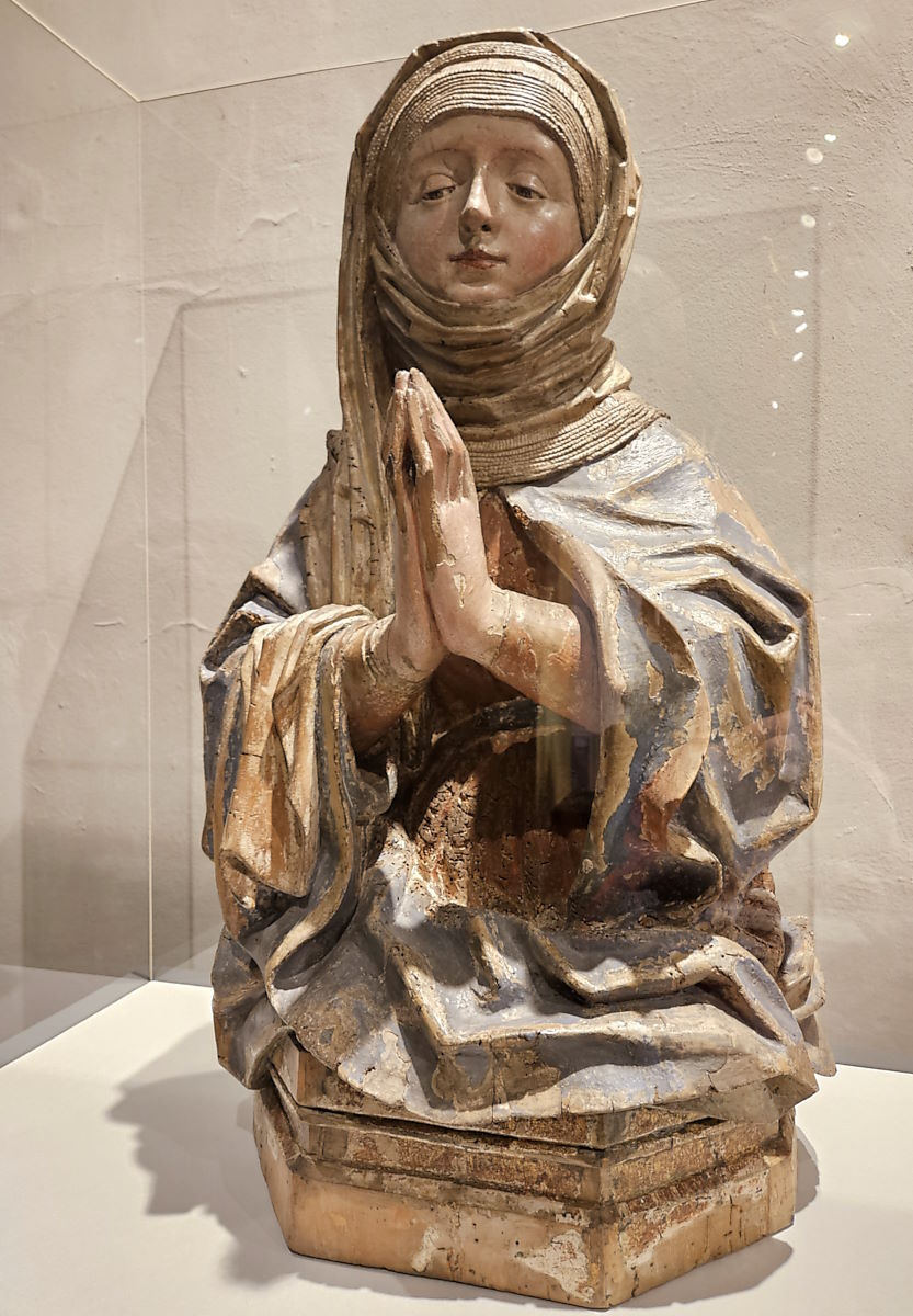 Das Kopffragment aus Ton könnte den hl. Sebastian darstellen. Es wurde um 1400/1410 in Altbayern oder Oberösterreich geschaffen. Um 1460 entstanden in Wien bzw. Florenz die Lindenholz-Büste einer heiligen Frau und das Marienbild (Stuck mit Bemalung). Das spätgotische Jesuskind mit Weintraube aus Lindenholz wurde um 1465/70 im Umfeld des Bildhauers Niclas Gerhaert van Leyden (um 1430 – 1473) gestaltet.