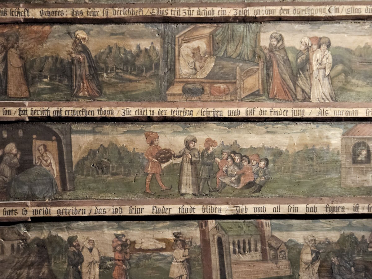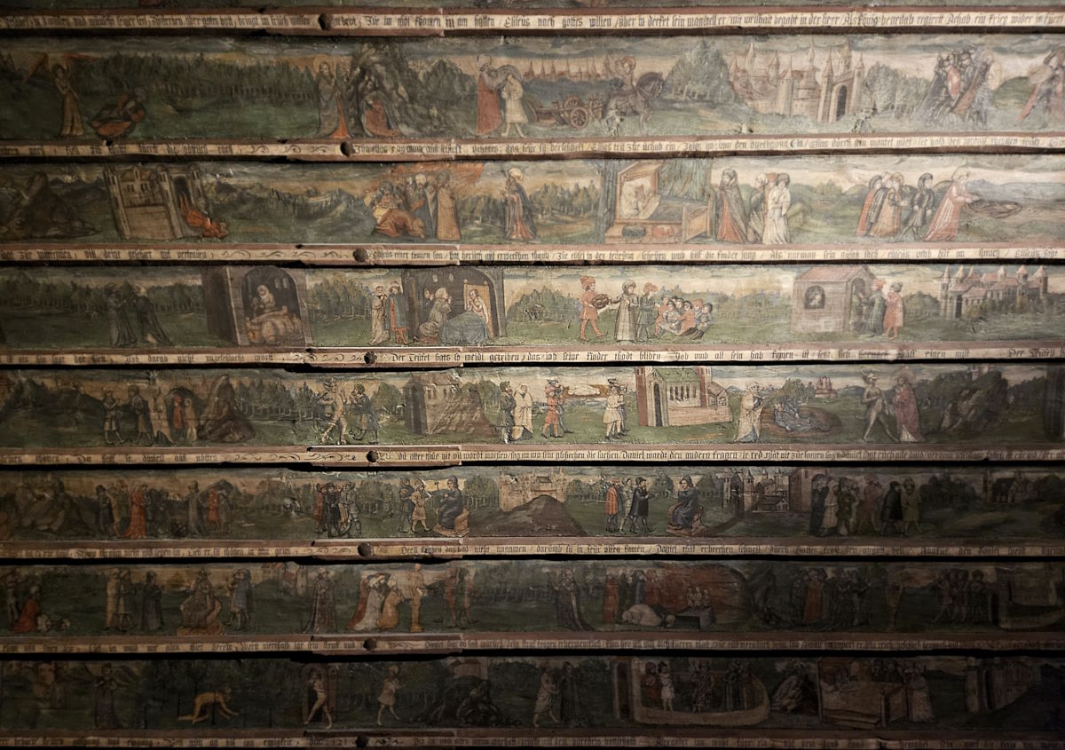 Die Truhe wurde 1576 in Schwaben angefertigt.