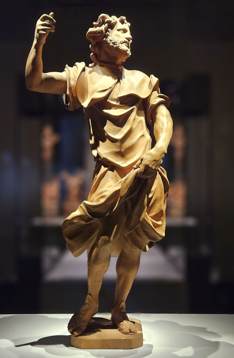 Die Barock-Figur des hl. Rochus, der eine Pestbeule am Bein zeigt, wurde um 1630/40 aus Buchbaum-Holz geschnitzt. Zur gleichen Zeit entstand im Umkreis von Peter Paul Rubens in Flandern die Statuette einer Afrikanerin.