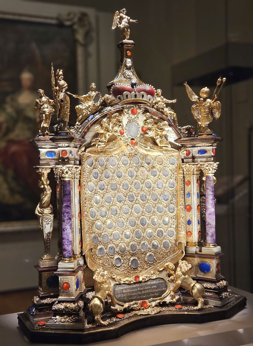 Kurfürst Maximilian I. von Bayern ließ sich für seine Sammlung antiker Goldmünzen vom Bildhauer und Elfenbeinschnitzer Christoph Angermair d. Ä. 1618 bis 1624 einen Schrein bauen, der mit mikroskopisch fein gearbeiteten Reliefs als Hauptwerk der europäischen Elfenbeinkunst des Barock gilt.