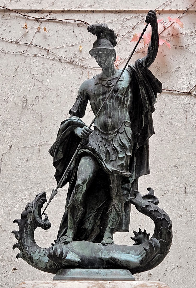 1901 gestalteten Heinrich Düll und Georg Pezold einen St.-Georgi-Brunnen, der damals im Garten der 1899/1900 nach Plänen der Architekten Paul Pfann (1860 – 1919) und Günther Blumentritt (1859 – 1941) errichteten neubarocken Betz’schen Gastwirtschaft aufgestellt wurde. 1918 zogen die vier Jahre zuvor in Bogenhausen gegründeten TOGAL-Werke in das Areal, und die Gaststätte ließen sie 1921 zum Verwaltungsgebäude umbauen. Mit Ausnahme des denkmalgeschützten Bauwerks riss man das TOGAL-Werk 2012 ab, um Platz für den modernen Komplex »Lagot« (Anagramm von Togal) zu schaffen. Davor, an der Ismaninger Straße 105, ist der St.-Georgi-Brunnen zu finden.