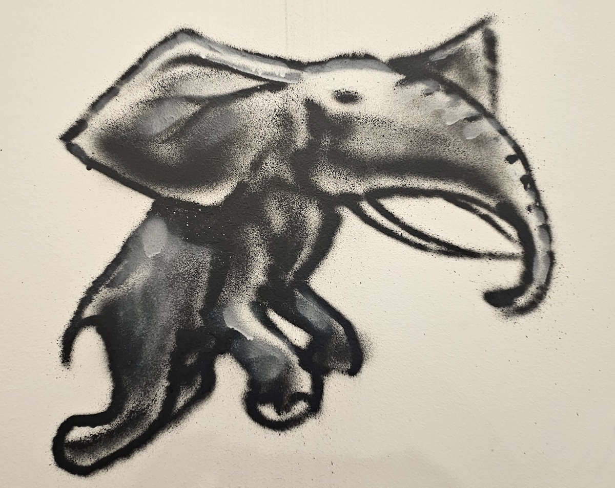 Die Künstlergruppe »Der Blaue Vogel« hatte an der ehemaligen Trambahnhaltestelle Goldschmiedplatz gesprüht, aber von der Streetart war Ende 2023 viel überschmiert. Im Oktober 2025 fanden wir eine neue Bemalung vor.