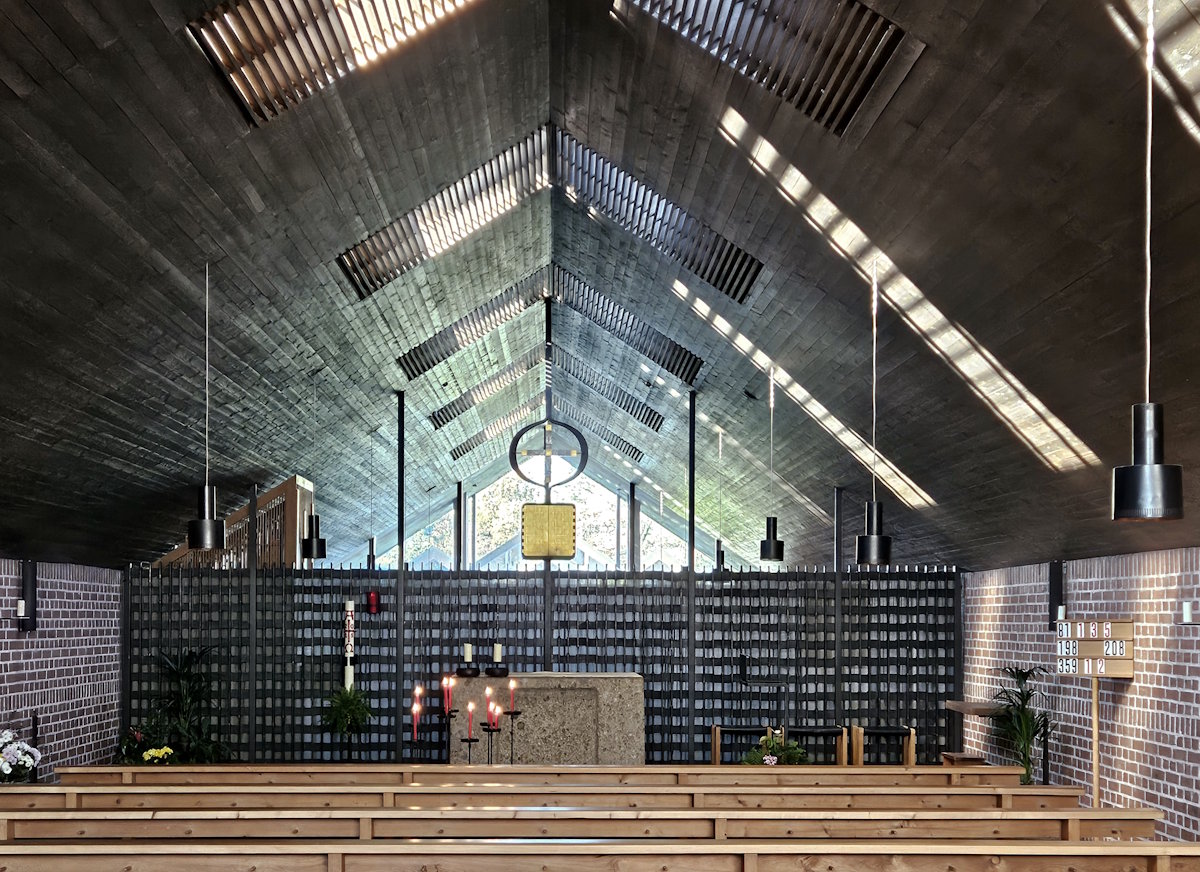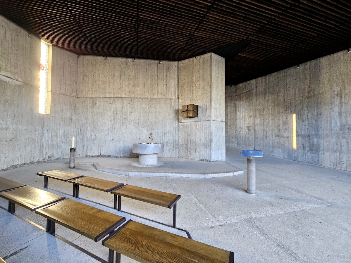 Westlich der katholischen Bauwerke wurde 1965 bis 1967 die evangelische Versöhnungskirche nach Entwürfen des Architekten Helmut Striffler (1927 – 2015) im Stil des Brutalismus errichtet.