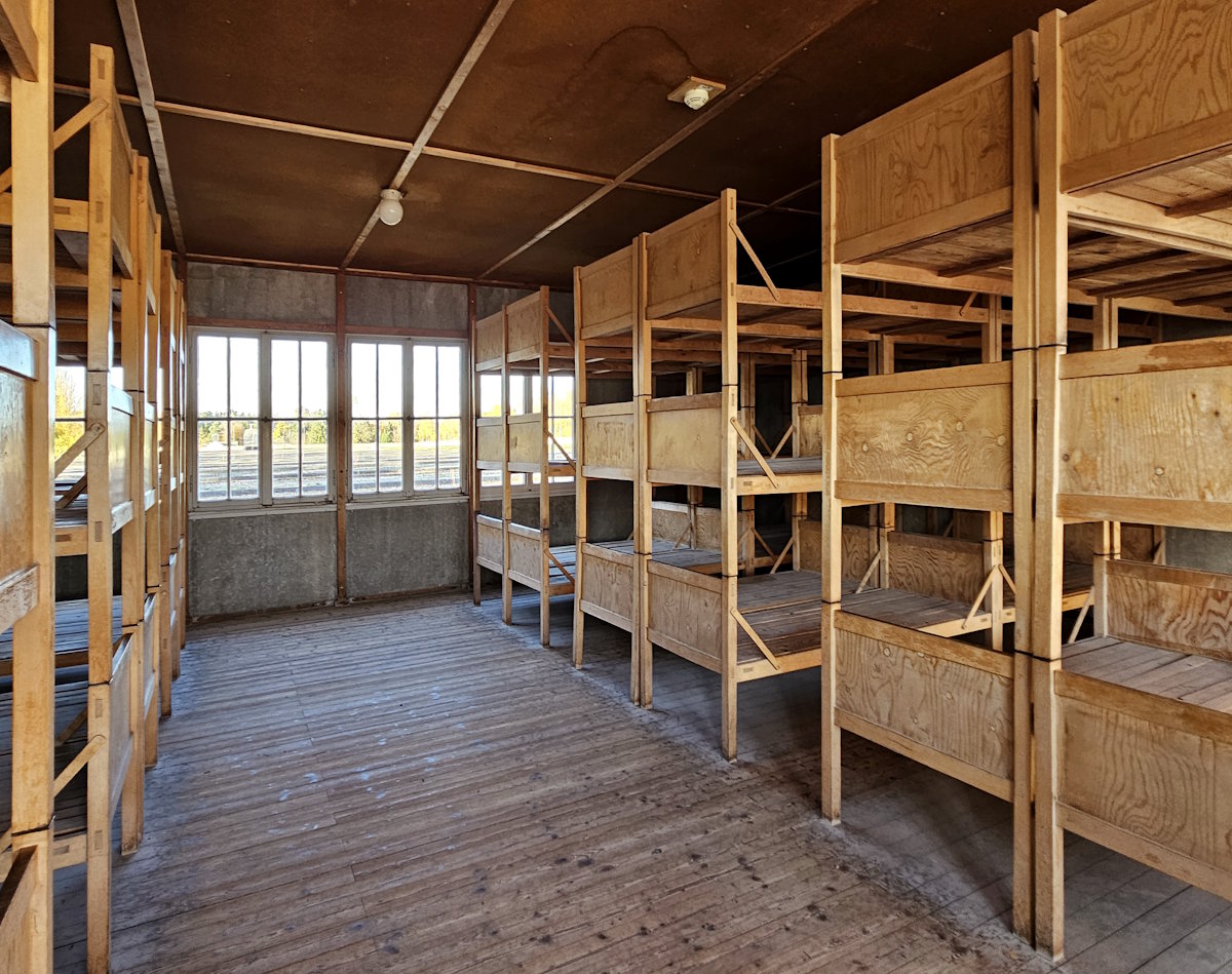 Jede der 30 Wohnbaracken bestand aus vier »Stuben« mit je einem Aufenthaltsraum und einem Schlafsaal, einem Wasch- und einem Toilettenraum für 52 Häftlinge. Bei der Überfüllung in den letzten Monaten pferchte man allerdings statt 208 Häftlingen pro Wohnbaracke bis zu 2000 zusammen.
