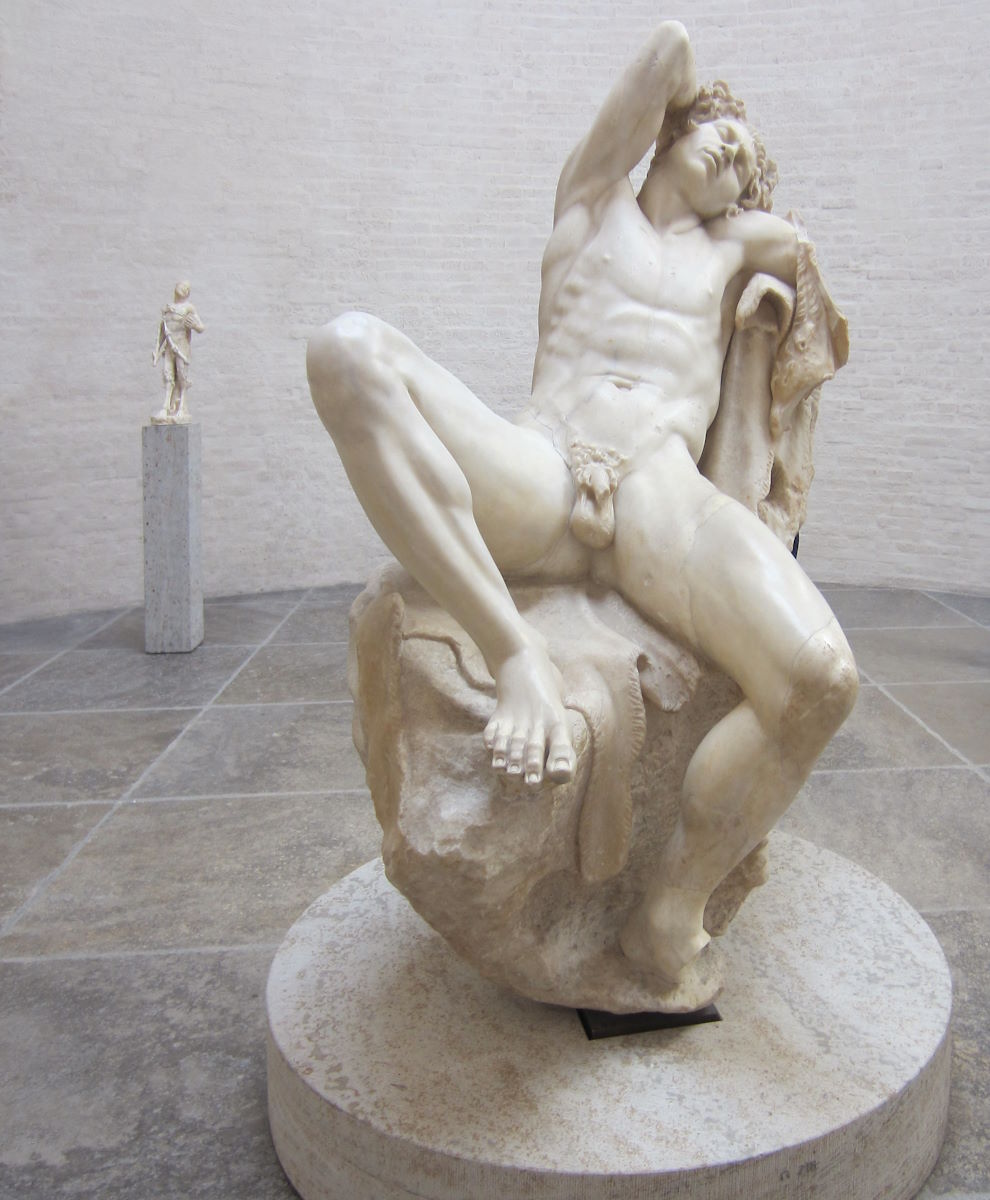 Das Original der nächsten Satyr-Figur gestaltete Praxiteles um 320 v. Chr. Beim Exponat handelt es sich um eine römische Kopie.