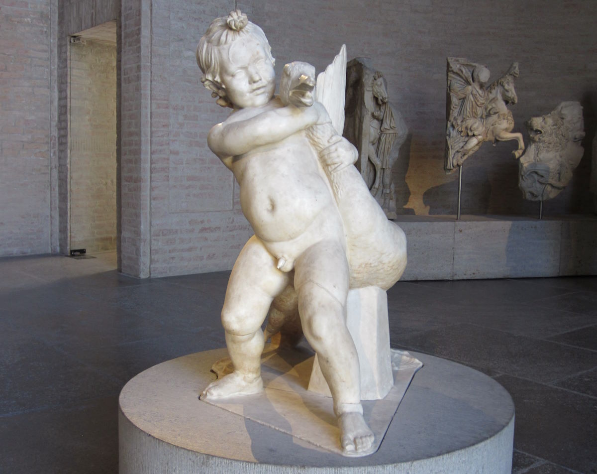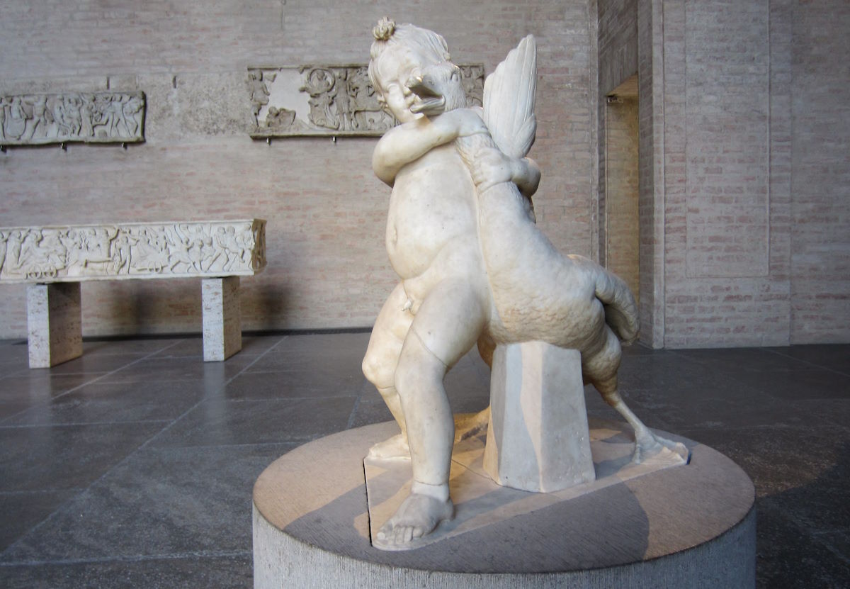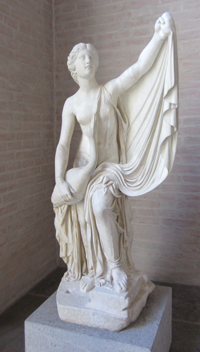 Die Statue der Leda mit dem Schwan ist ebenfalls eine römische Kopie. Das Original wurde um 380 v. Chr. von dem griechischen Bildhauer Timotheos geschaffen.