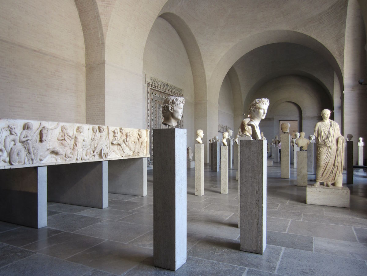Bei den Exponaten der Glyptothek im Kunstareal München handelt es sich um Skulpturen, Reliefs und Mosaike aus archaischer (700 – 490 v. Chr.) bis spätrömischer Zeit (bis 550 n. Chr.).