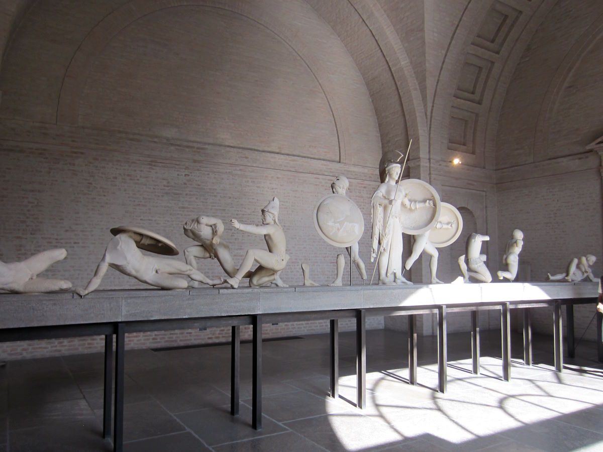 Die Giebelskulpturen wurden 1811 auf Ägina entdeckt, und im Jahr darauf ersteigerte Martin von Wagner sie für Ludwig I. Seit 1827 gehören sie zur Glyptothek.