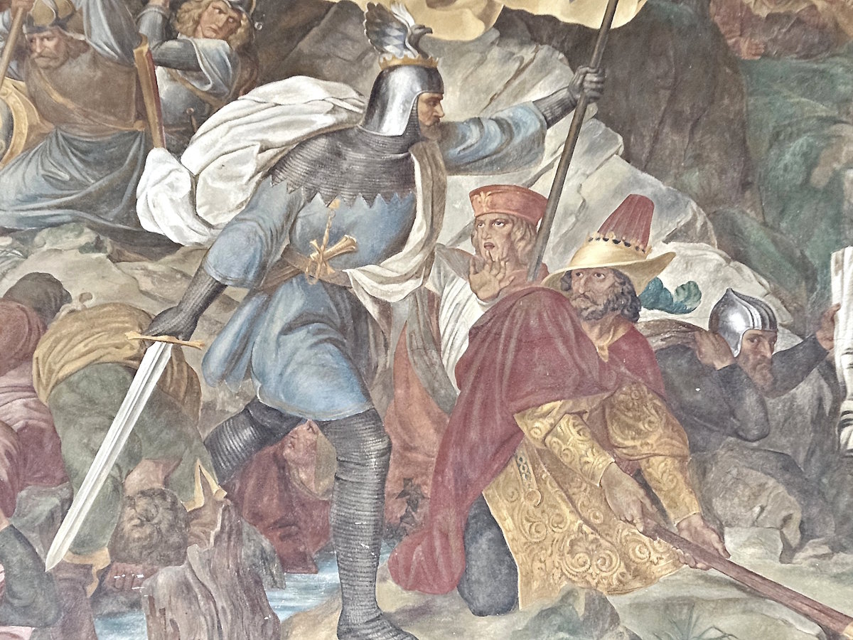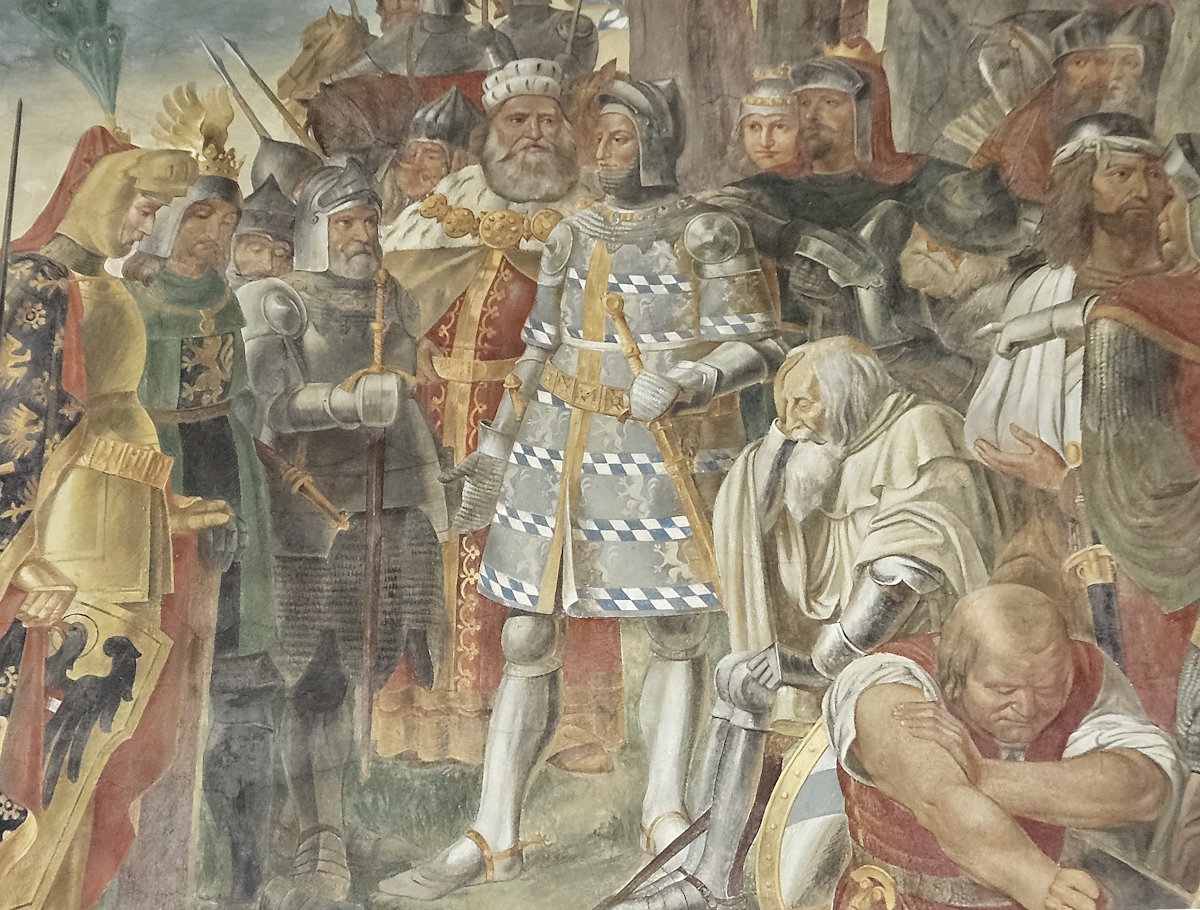 In der Schlacht bei Mühldorf am Inn bzw. Ampfing besiegt 1322 Ludwig der Bayer seinen Konkurrenten Friedrich den Schönen.