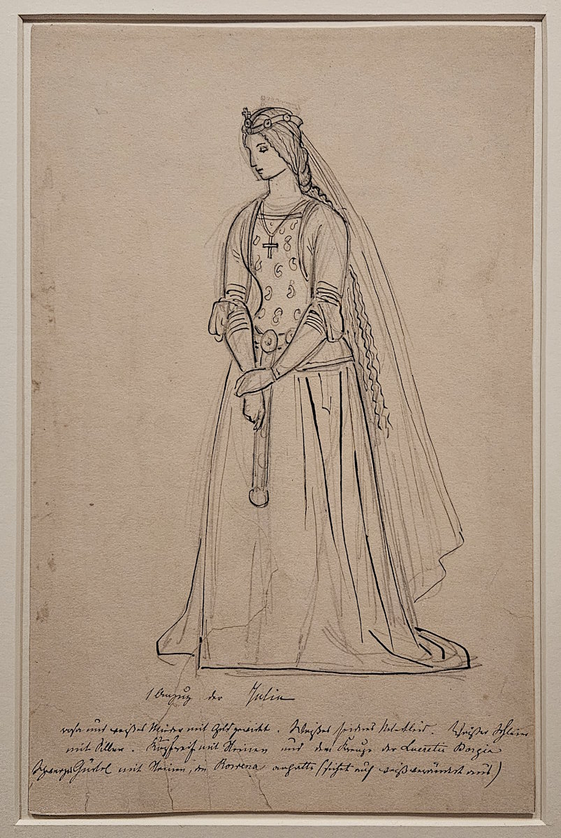 Herzog Georg II. von Sachsen-Meiningen (1826 – 1914), ein Gründungmitglied der Deutschen Shakespeare-Gesellschaft (1864), entwarf 1897 mit Bleistift und Feder ein Kostüm für die Julia.