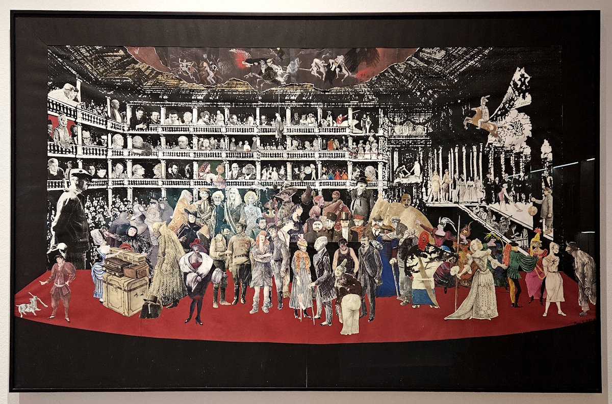 Annemarie Rost (1924 – 2018), eine gelernte Damenschneiderin, studierte 1947 bis 1952 Bühnenbild an der Hochschule für Bildende Künste Dresden und entwickelte sich zu einer der bedeutendsten Bühnenbildnerinnen in der DDR. 2000 schuf Annemarie Rost die Collage »Hommage au Théâtre«.