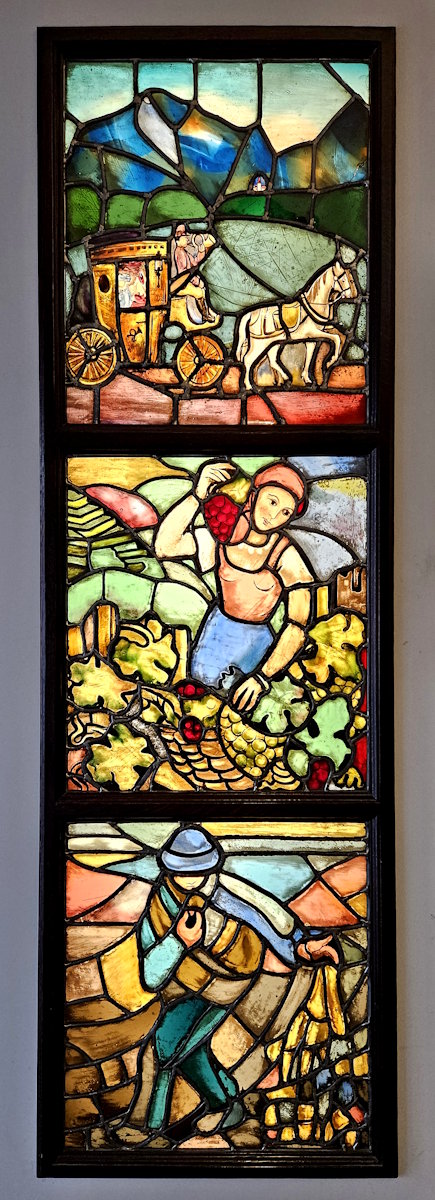 Zu Beginn der Fünfzigerjahre bemalte Günter Voglsamer (1918 – 2004) die Wände des Pausenfoyers der »Bayerischen Staatsoperette« – so die damalige Bezeichnung des Theaters am Gärtnerplatz – mit Figuren der »Commedia dell’arte«. Später bearbeitete der Künstler sein Werk, indem er beispielsweise Schatten hinzufügte. Und als nach seinem Tod bei der Generalsanierung des Gebäudes die Durchgänge bogenförmig verkleinert wurden, also neue Wandflächen entstanden, ergänzte seine Tochter Ninon Voglsamer (*1957) die Wandmalerei entsprechend.