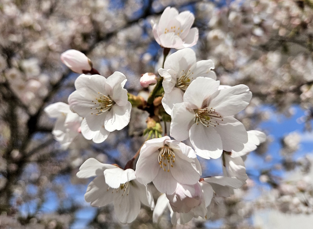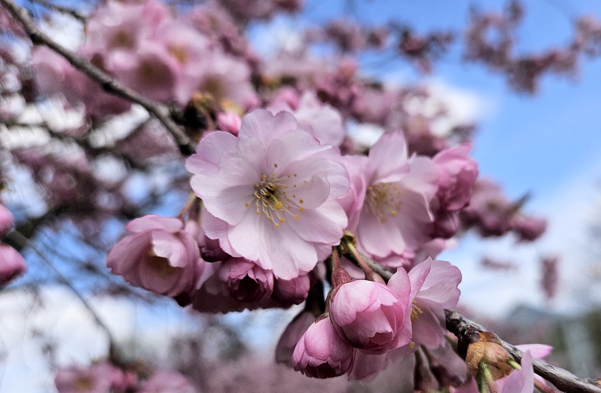 An der Ostseite der Ettalstraße in Sendling steht eine Reihe von Kirschbäumen. Am 23. April 2025 war wohl eine der letzten Möglichkeiten in diesem Jahr, die Blütenpracht anzuschauen, denn sobald Wind aufkam, schneite es Blütenblätter.