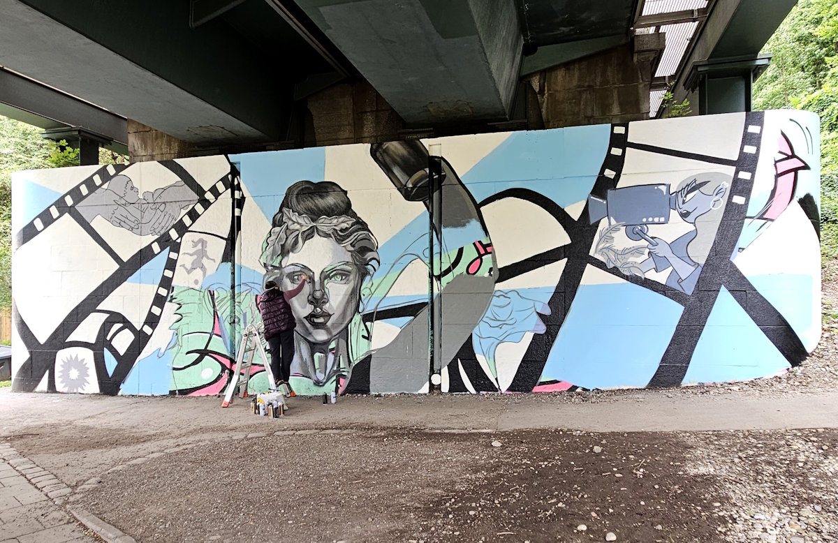 Sieben Künstlerinnen schlossen sich 2024 zum Streetart-Frauenkollektiv »Munich Wallflowers« zusammen. Auch am Kolumbusplatz steht dem Kollektiv inzwischen die Fläche eines Brückenpfeilers exklusiv zur Verfügung, und am 13. September 2025 begann die Bemalung.