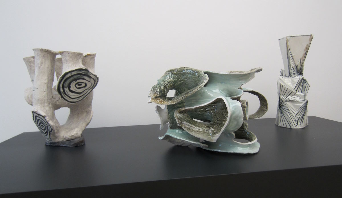 Beate Kuhn (1927 – 2015): Weißer Flügel, 1974; Große Höhle, um 1982; Ballett, 1969; Strudel, 80er Jahre (Steinzeug)
