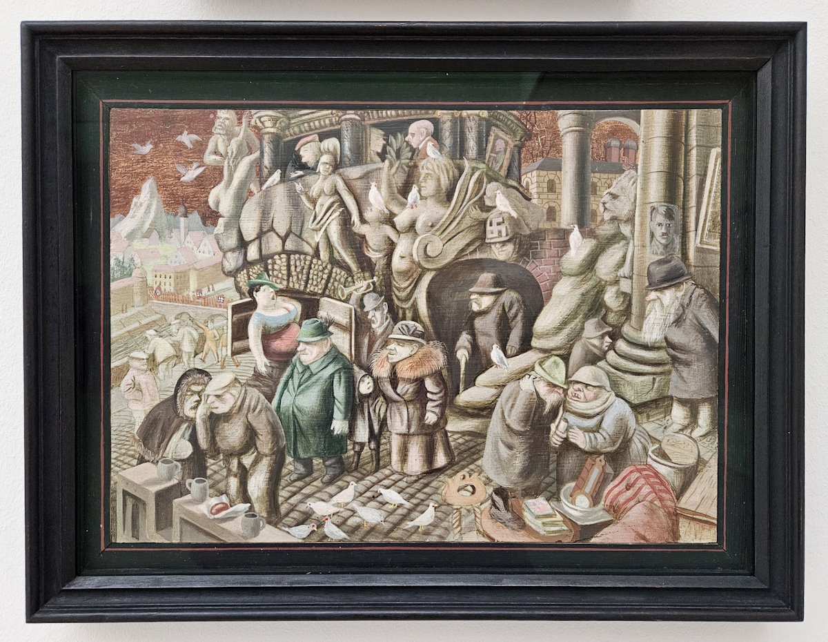 Jacques Hérold (1910 – 1987): Der Kuss, 1962 / Karl Hubbuch (1891 – 1979): München, ca. 1933 (Fotos: Juli 2025)