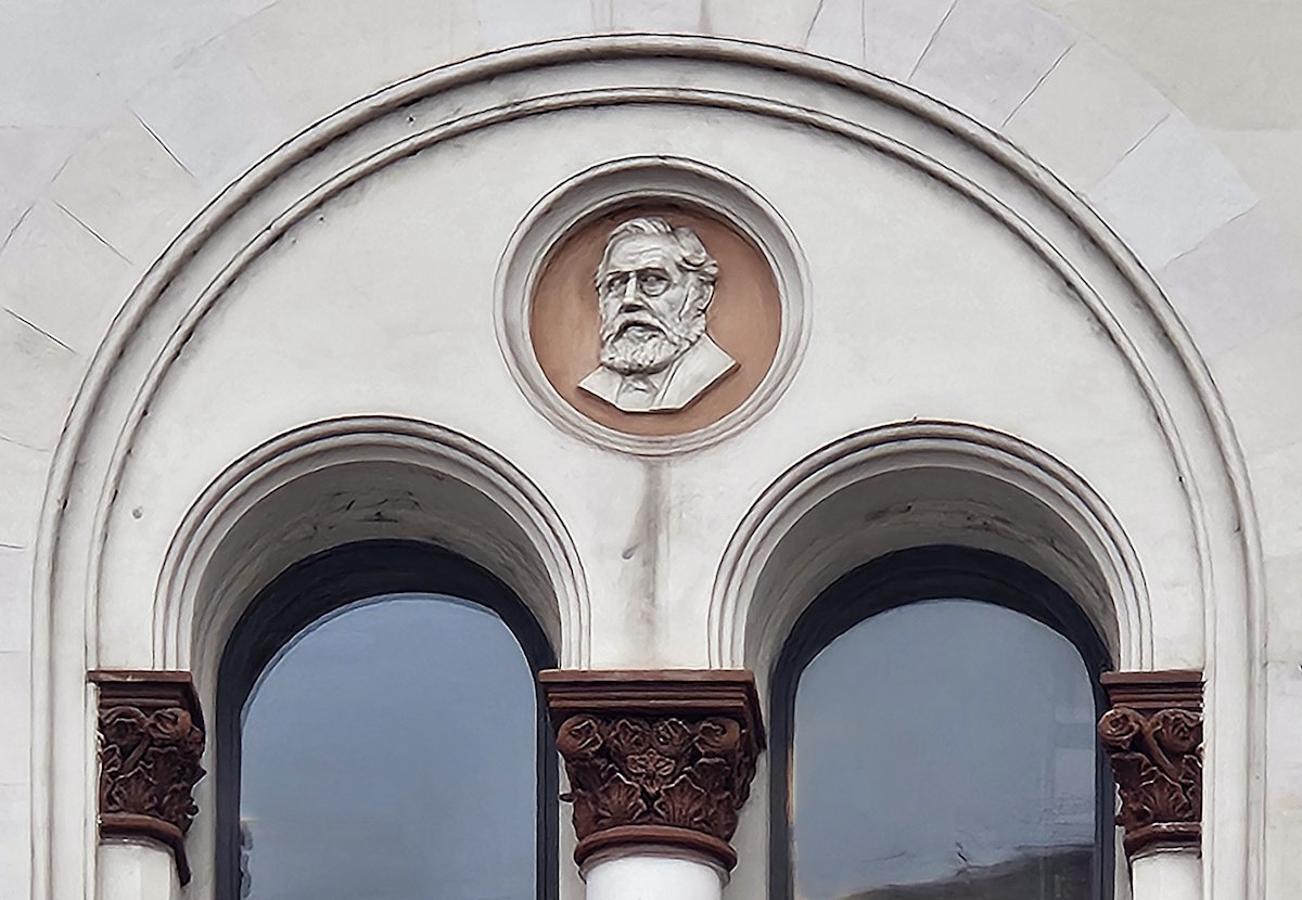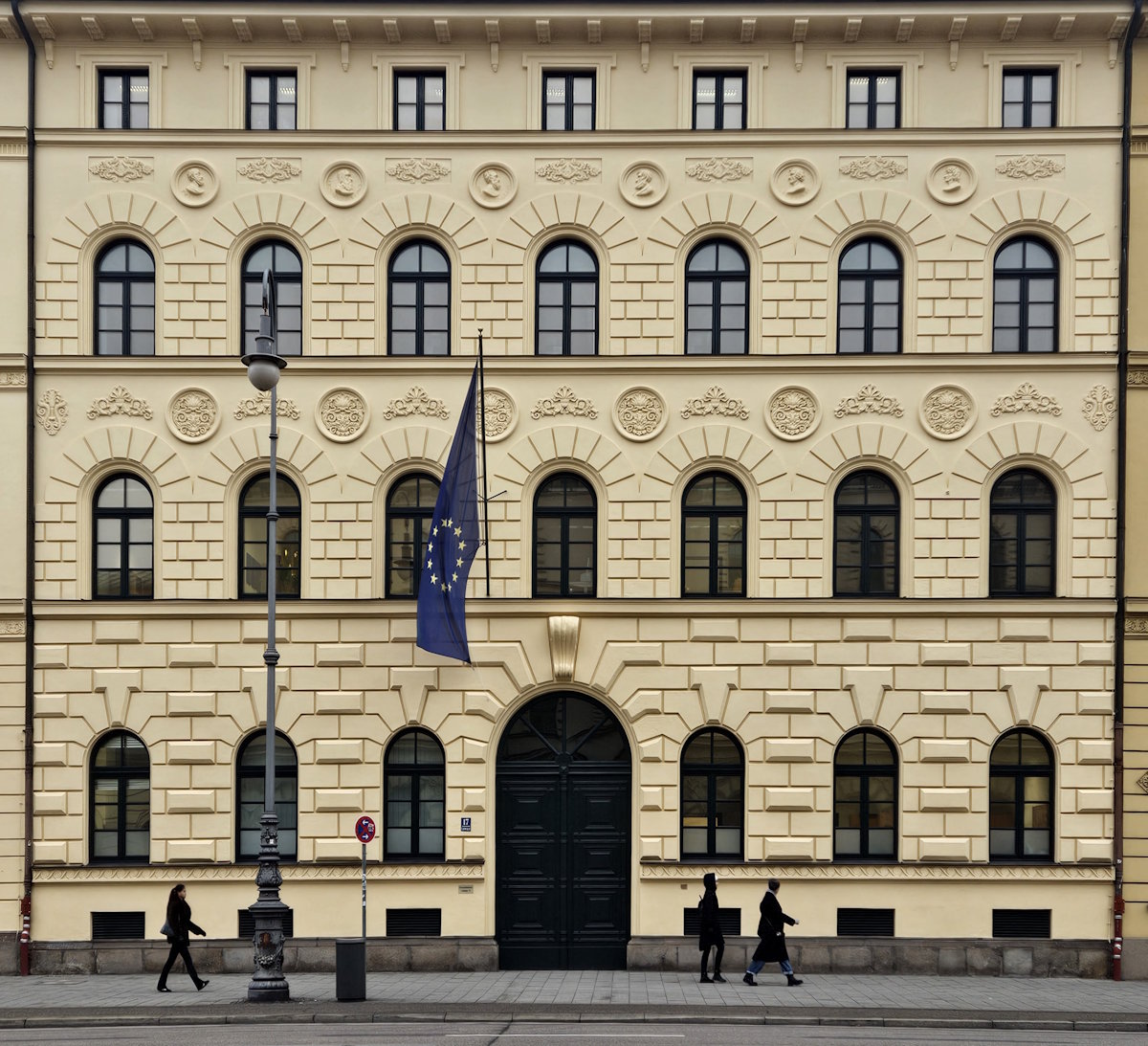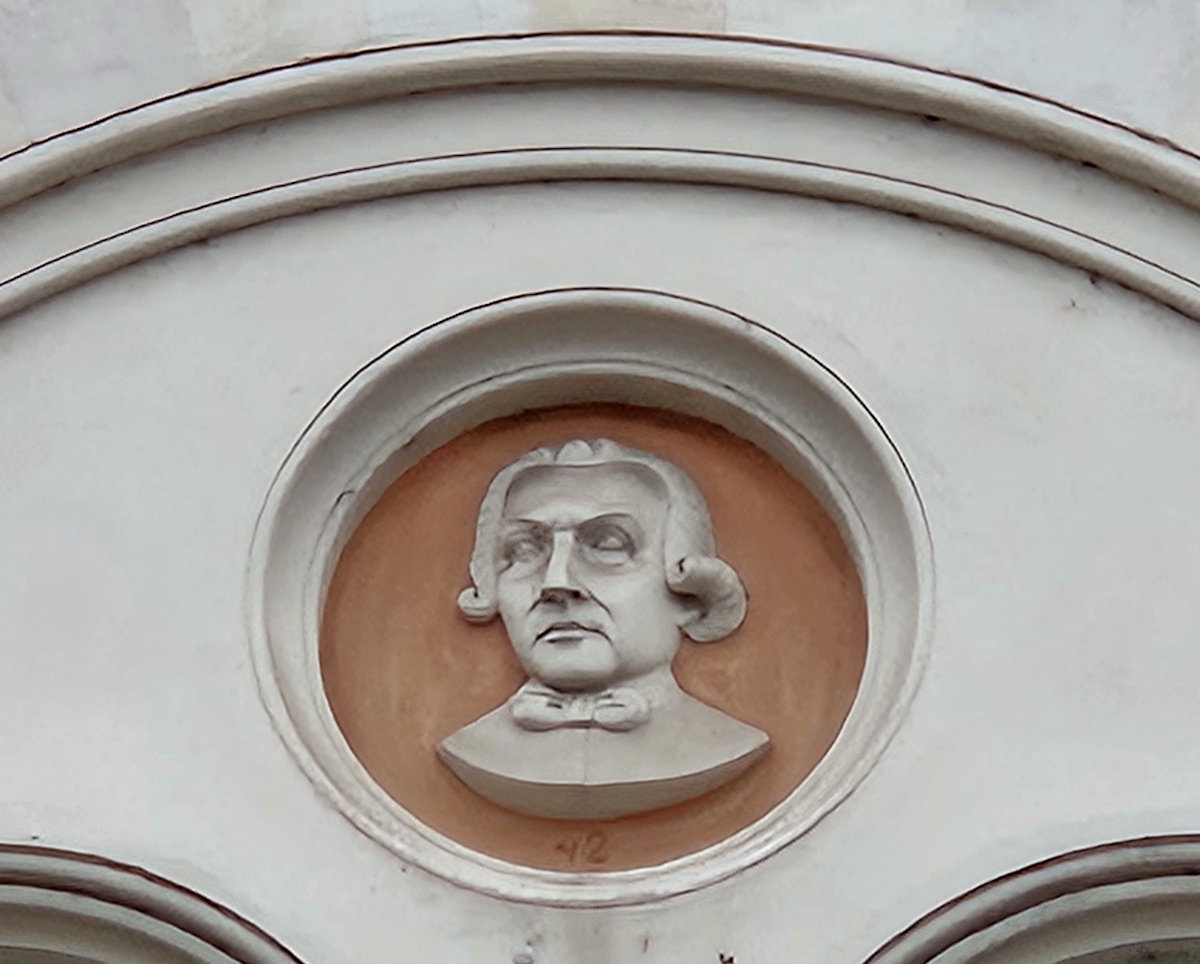 Für die Fassade schuf der Bildhauer Francesco Sanguinetti (1800 – 1870) 44 Medaillon-Porträts bayrischer Professoren.