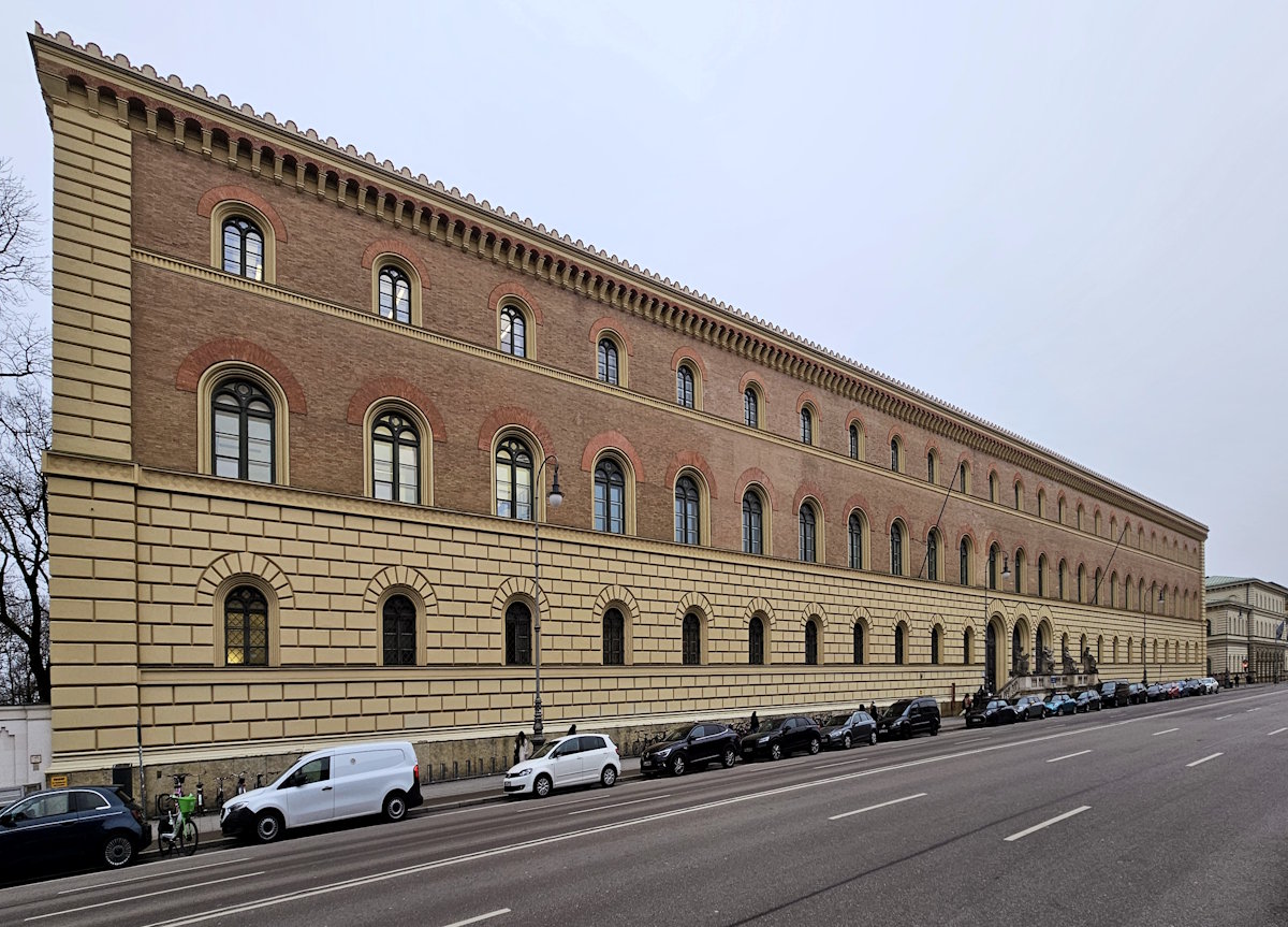 1822 bis 1830 baute Leo von Klenze das bayrische Kriegsministerium. Im Zweiten Weltkrieg wurde der Komplex zerbombt, aber 1964 bis 1967 im klassizistischen Stil wieder aufgebaut. Inzwischen nutzen ihn das Bayerische Hauptstaatsarchiv, das Staatsarchiv München und das Institut für Bayerische Geschichte der LMU (»Staatliche Archive«, Ludwigstraße 14).