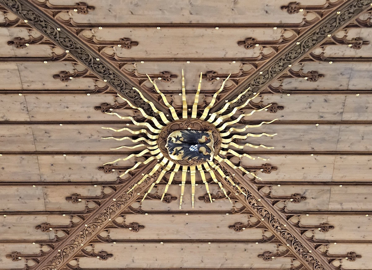 Im 31 x 17 Meter großen Fest- und Tanzsaal im Obergeschoss des Alten Rathauses ließen sich die Wittelsbacher Landesfürsten von den Ständevertretern huldigen. Der doppelköpfige Adler im Zentrum des 1476/77 von Hans Wengler geschaffenen Tonnengewölbes verweist auf Kaiser Ludwig den Bayern, und der Wappenfries erinnert an Fürstentümer und bayrische Adelsgeschlechter.
