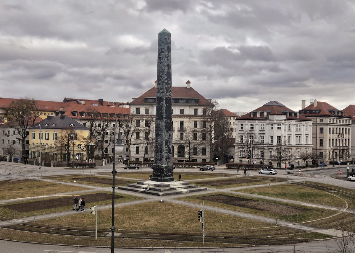 Der Wittelsbacherplatz in München wurde 1820 angelegt. Im Zentrum ragt das 1839 nach einem Modell des dänischen Bildhauers Bertel Thorvaldsen (1770 – 1844) gestaltete Reiterstandbild* des Kurfürsten Maximilian I. auf. Im Norden des Platzes steht das 1825 errichtete Palais Ludwig Ferdinand. Im Osten befinden sich das 1817 – 1821 gebaute Palais Leuchtenberg und das 1826 – 1828 als Ball- und Konzerthaus konzipierte Odeon. Auf der Westseite begrenzt das Palais Arco-Zinneberg (1820) den Wittelsbacherplatz. Alle vier Palais wurden von Leo von Klenze gestaltet.