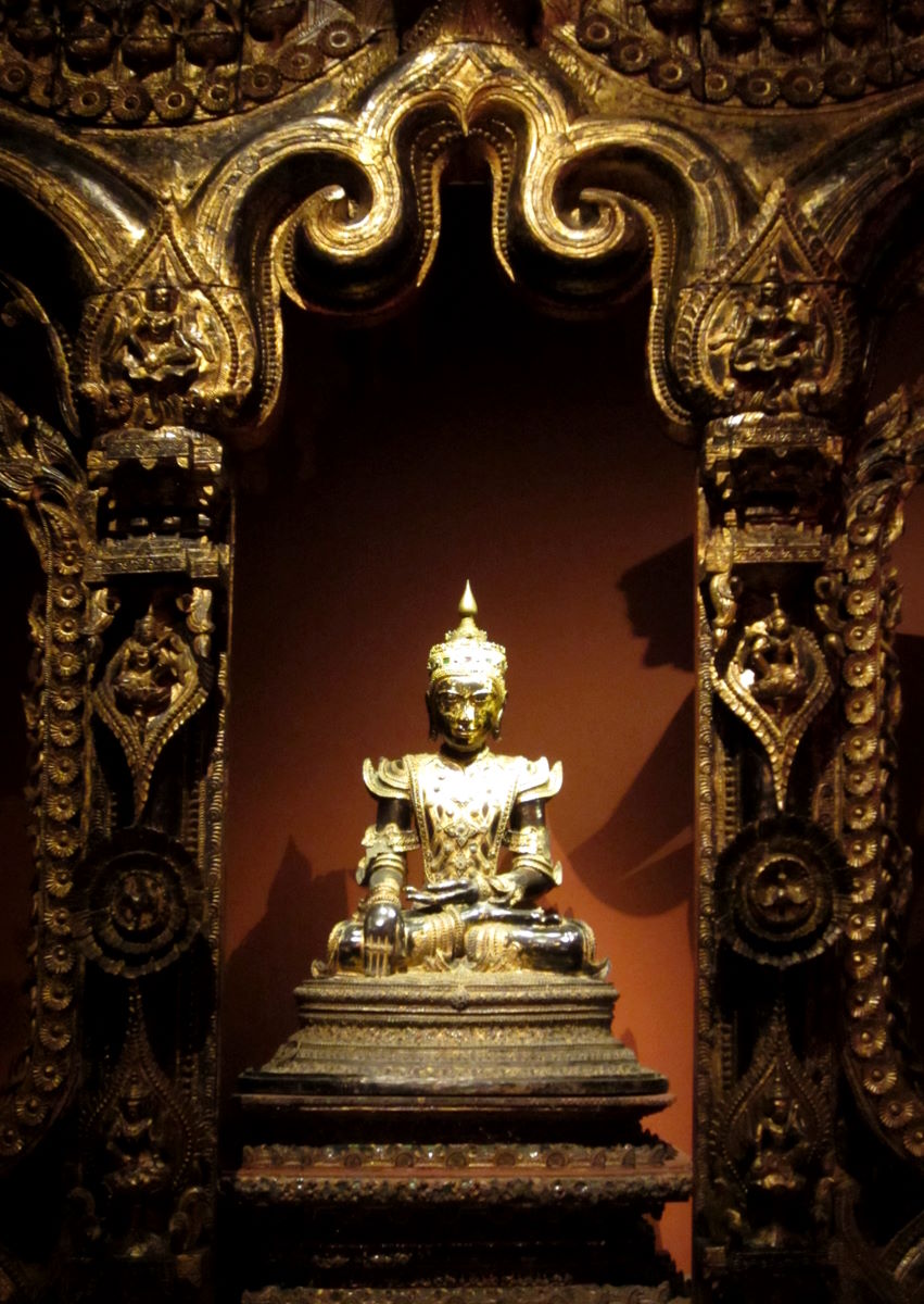 Im Buddha-Saal des Museums Fünf Kontinente dominiert ein überlebensgroßer goldener Buddha Amida auf dem Lotus-Thron. Zwei Niō-Statuen flankieren ihn; weitere Wächterfiguren verteilen sich auf den Raum. Max Buchner, der Direktor und Konservator von 1887 bis 1907, erwarb den Buddha Amida um 1890 in Japan.