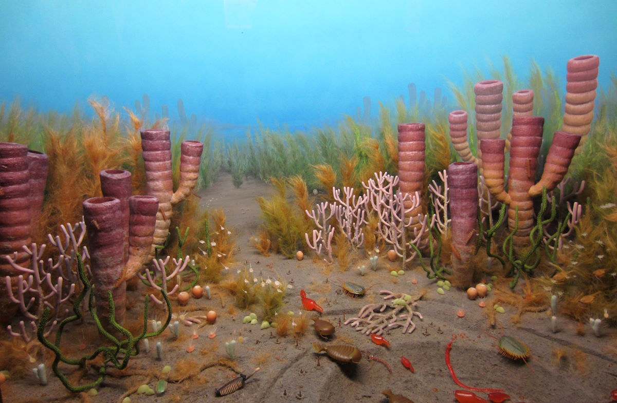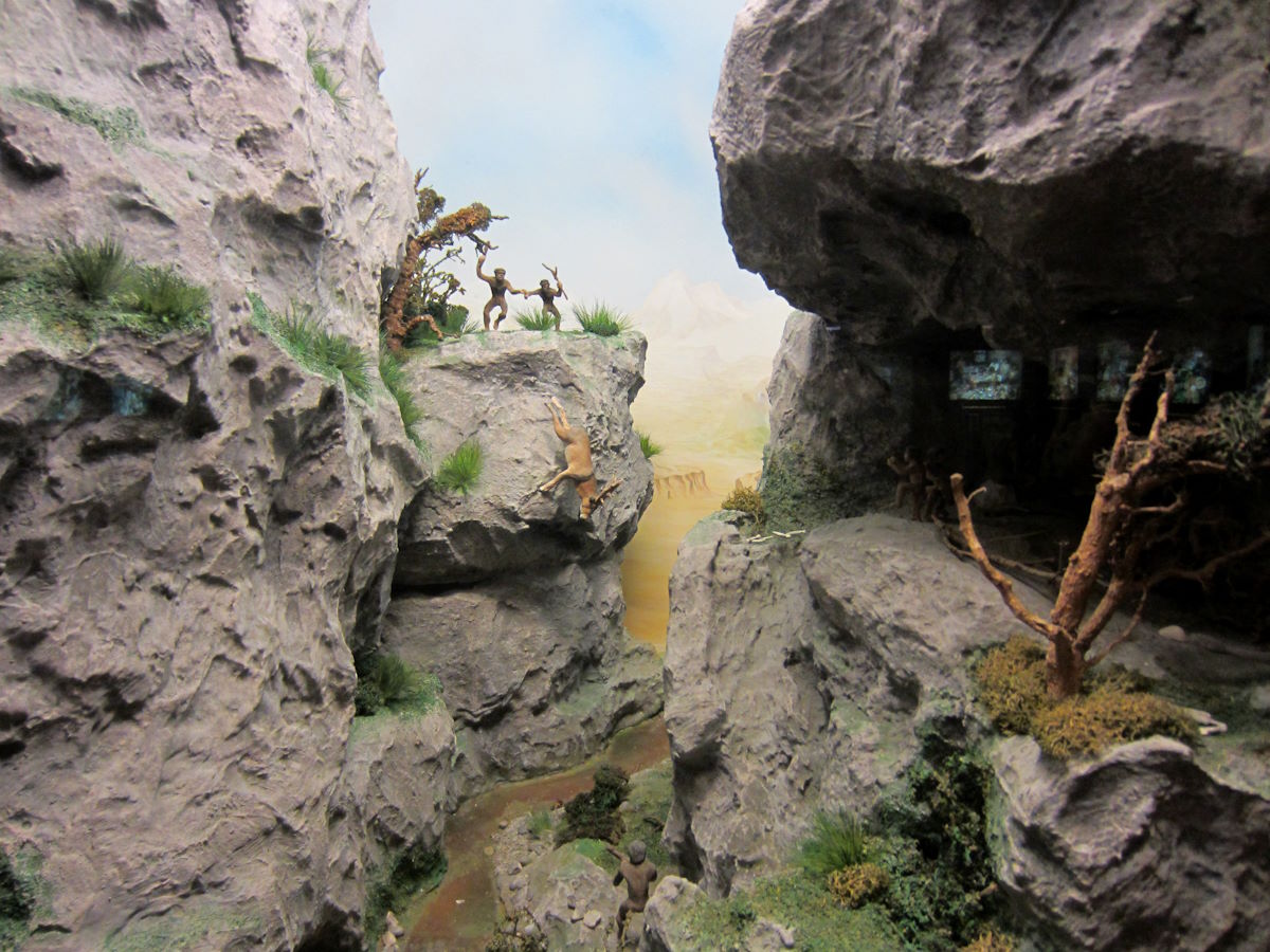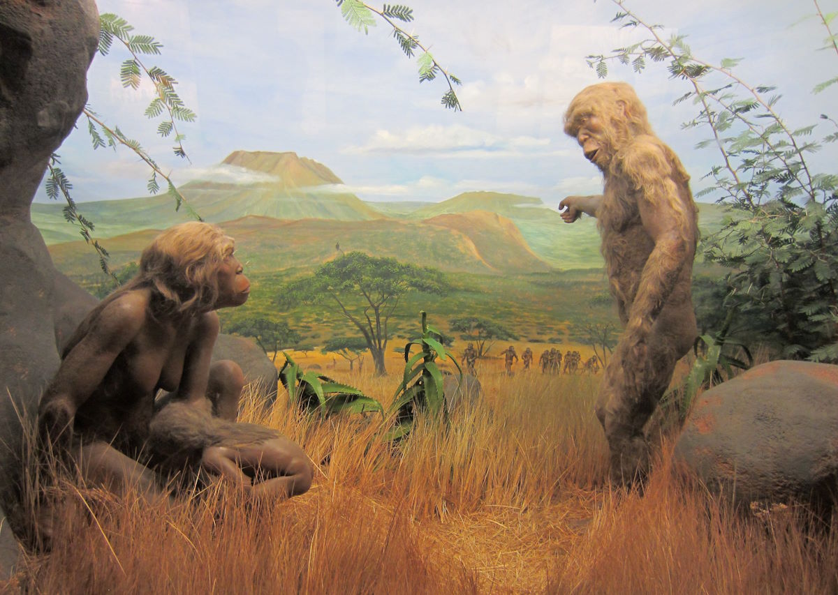 Vor vier Milliarden Jahren bildeten sich in den Ur-Ozeanen komplexe Biomoleküle und erste organische Zellen. Die Ausstellung veranschaulicht die Geschichte bis zu den ersten Entwicklungsstufen des Menschen wie dem Homo rudolfensis, der vor zwei Millionen Jahren in Ostafrika lebte.