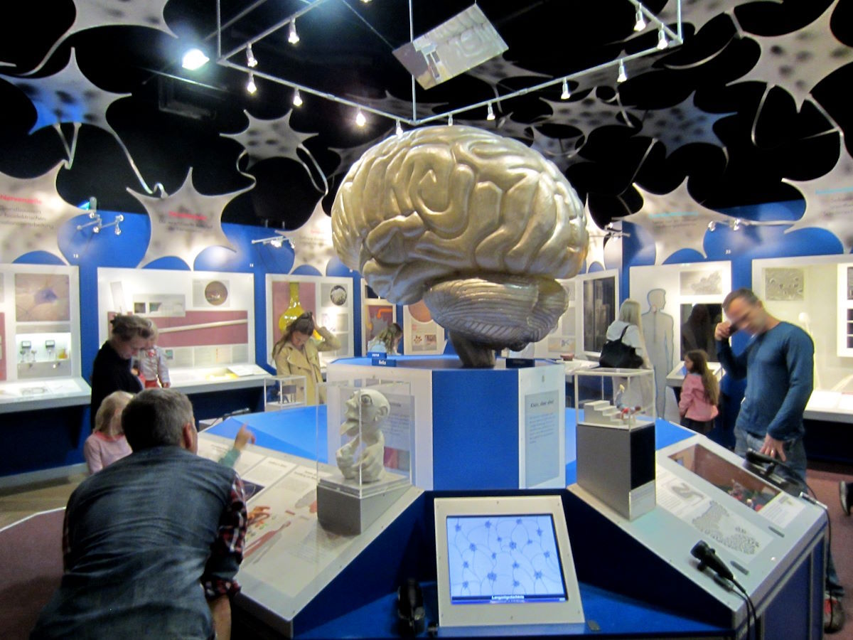 Ein Saal im Museum »Mensch und Natur« wird von einem Modell des menschlichen Gehirns dominiert. Durch Knopfdruck lassen sich Zentren der Bewegungssteuerung sowie Hör, Seh- und Sprachzentren zum Leuchten bringen.