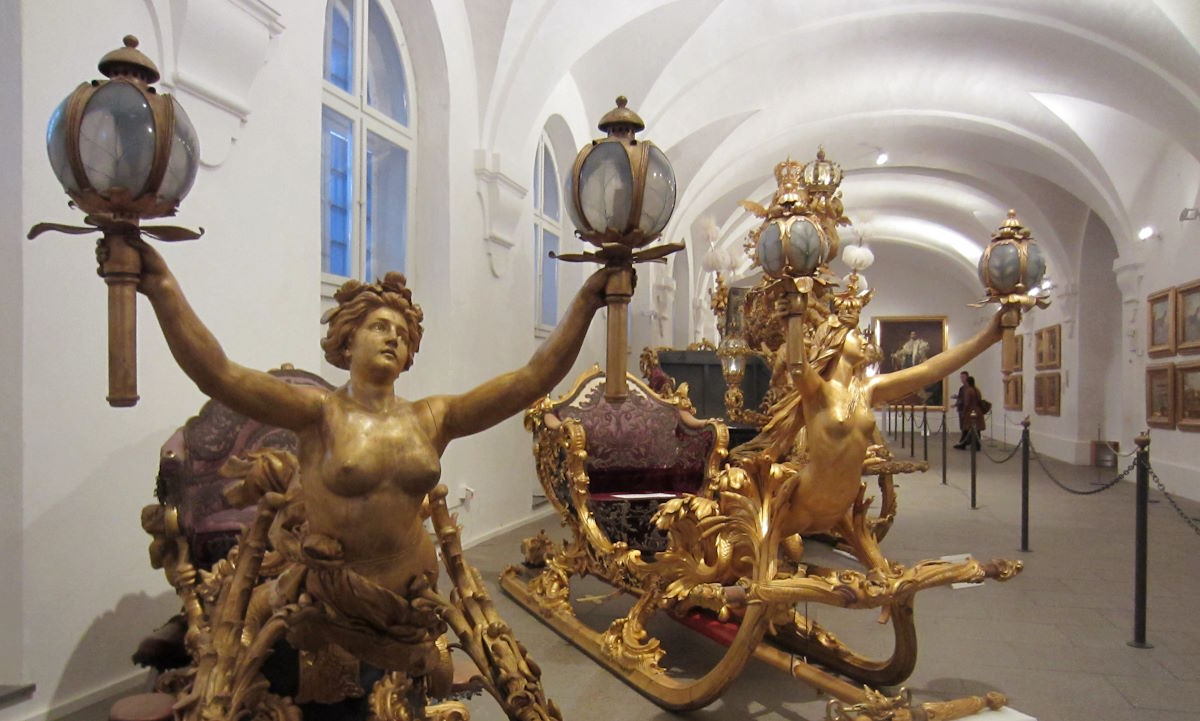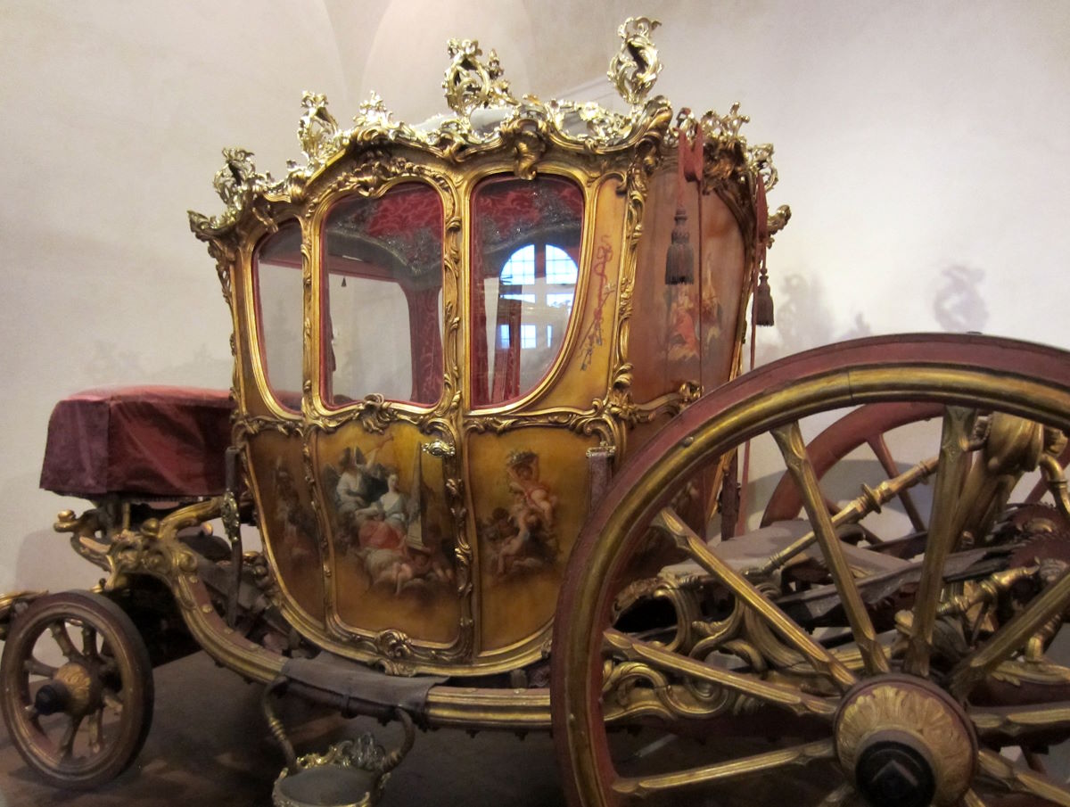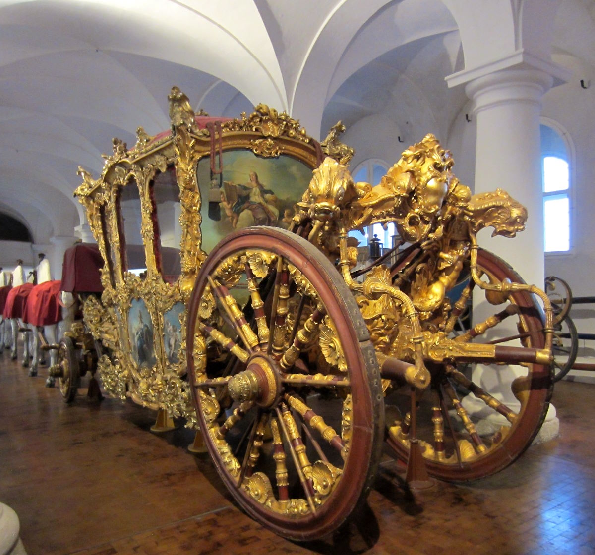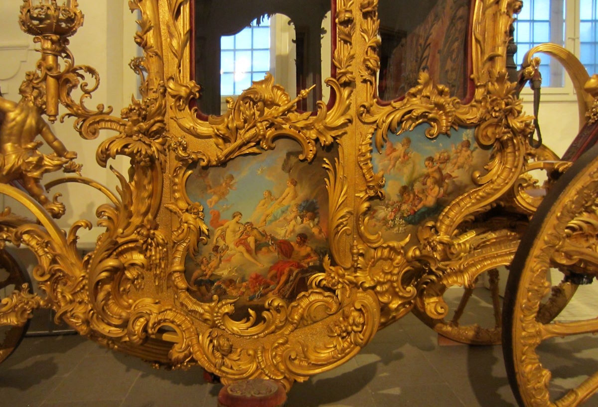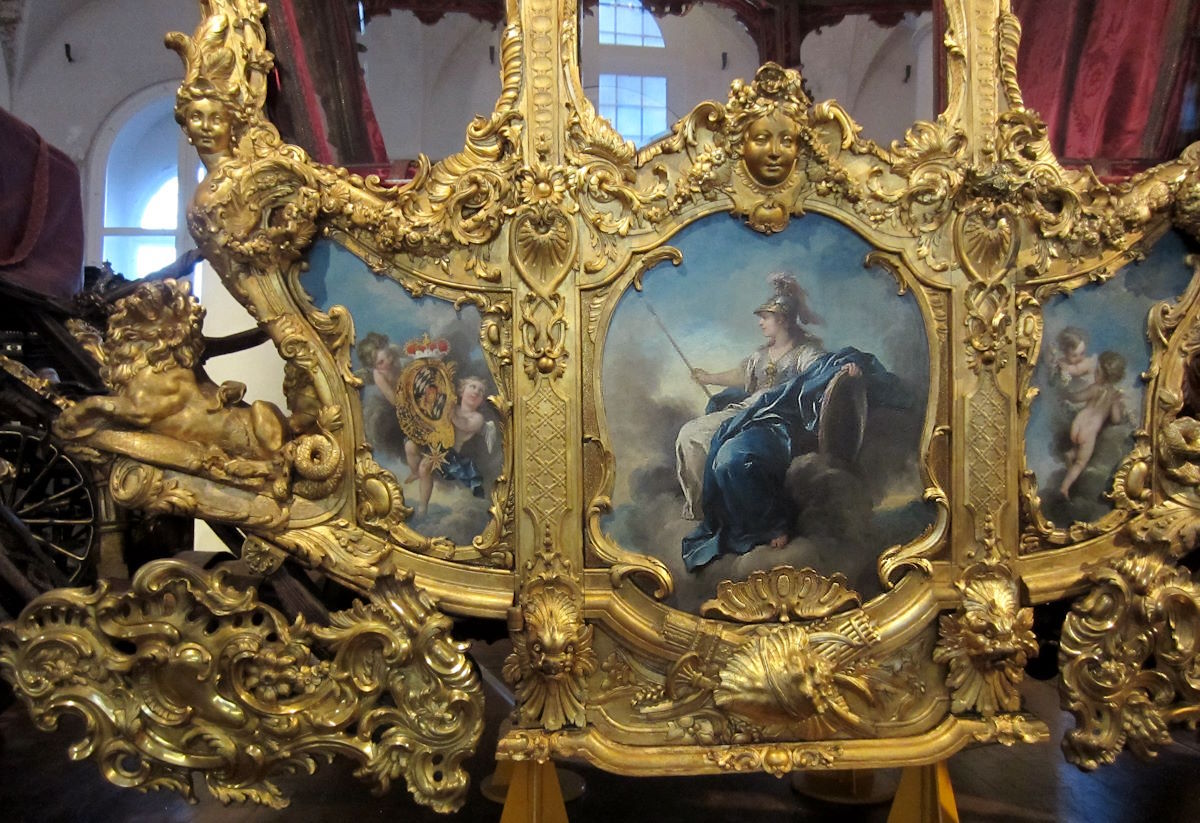Die um 1750 in Paris gebaute Gala-Berline stammt aus dem Besitz des pfalz-bayerischen Kurfürsten Karl Theodor (1724 – 1799). Die Gemälde wurden 1758 angebracht.