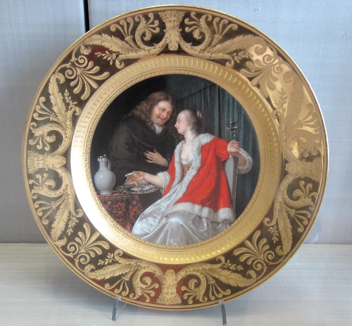 In einer Vitrine sind 18 Teile aus einem 1792 bis 1795 von der Porzellan Manufaktur Nymphenburg nach Modellen von Dominikus Auliczek für Kurfürst Karl Theodor hergestellten Speiseservices mit klassizistischem Perl-Dekor ausgestellt. Ungewöhnlich ist nicht zuletzt die zwölfeckige Form.