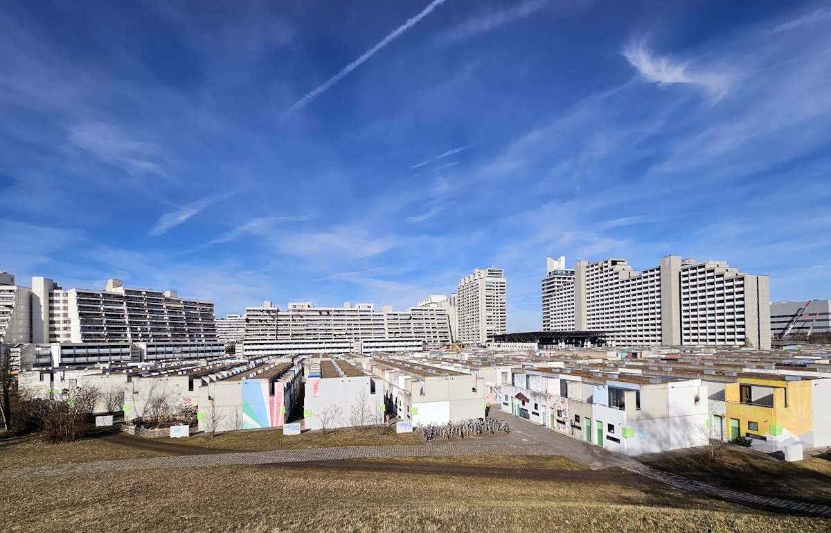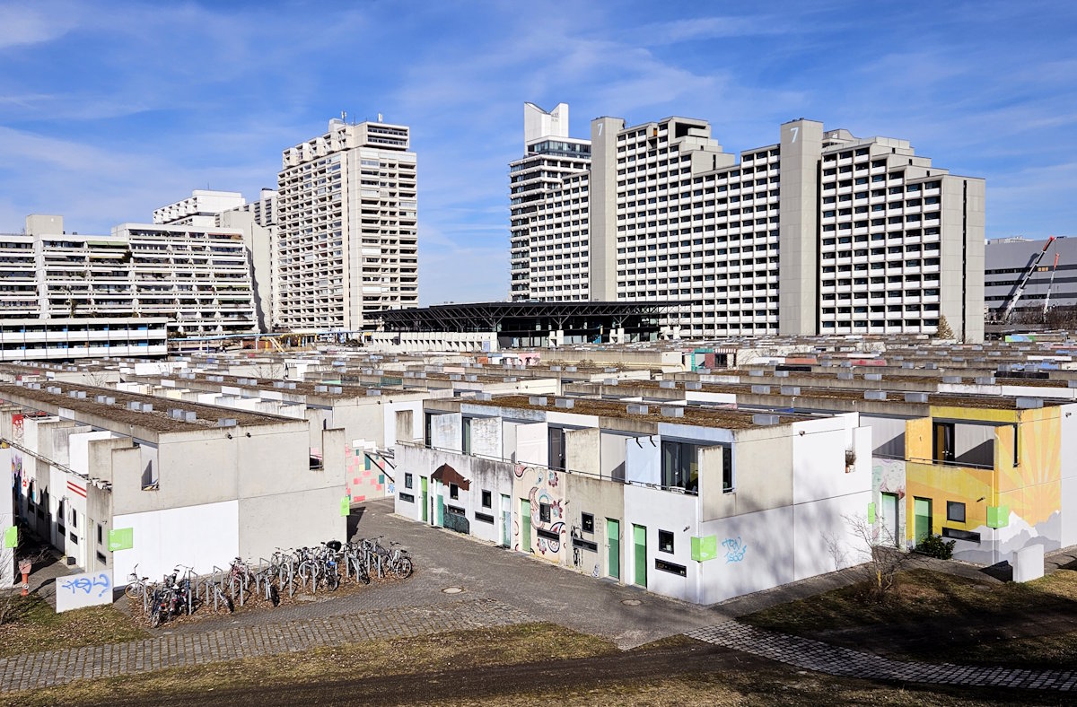Für die Teilnehmerinnen und Teilnehmer an den XX. Olympischen Sommerspielen 1972 in München baute man neben dem Olympiapark Unterkünfte: das Olympiadorf. Die Entwürfe für die nach den Spielen als Trabantenstadt konzipierte Anlage stammten von dem Stuttgarter Architekturbüro HW&P (Erwin Heinle, Robert Wischer und Partner).