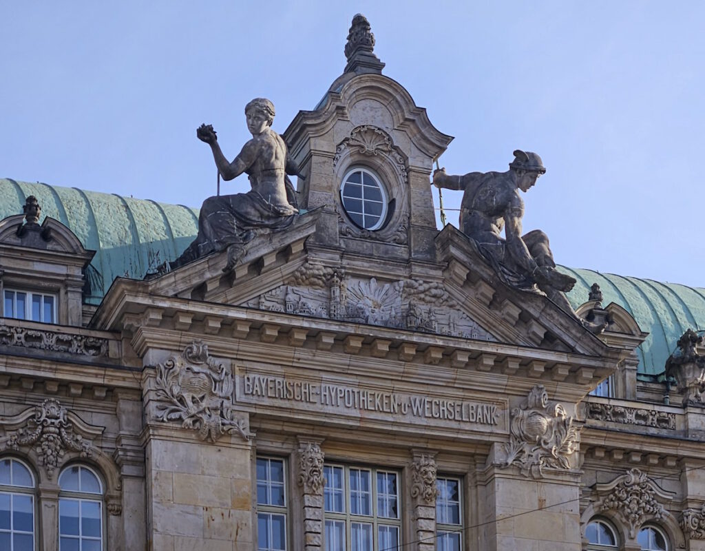 Nach einem Entwurf des Münchner Architekten Albert Schmidt (1841 – 1913) ließ die Bayerische Hypotheken- und Wechselbank 1895/96 ein neubarockes Verwaltungsgebäude in der Kardinal-Faulhaber-Straße 10 errichten. Der historisierende Fassadenschmuck aus Sandstein stammt von dem Bildhauer Hugo Kaufmann (1868 – 1919).