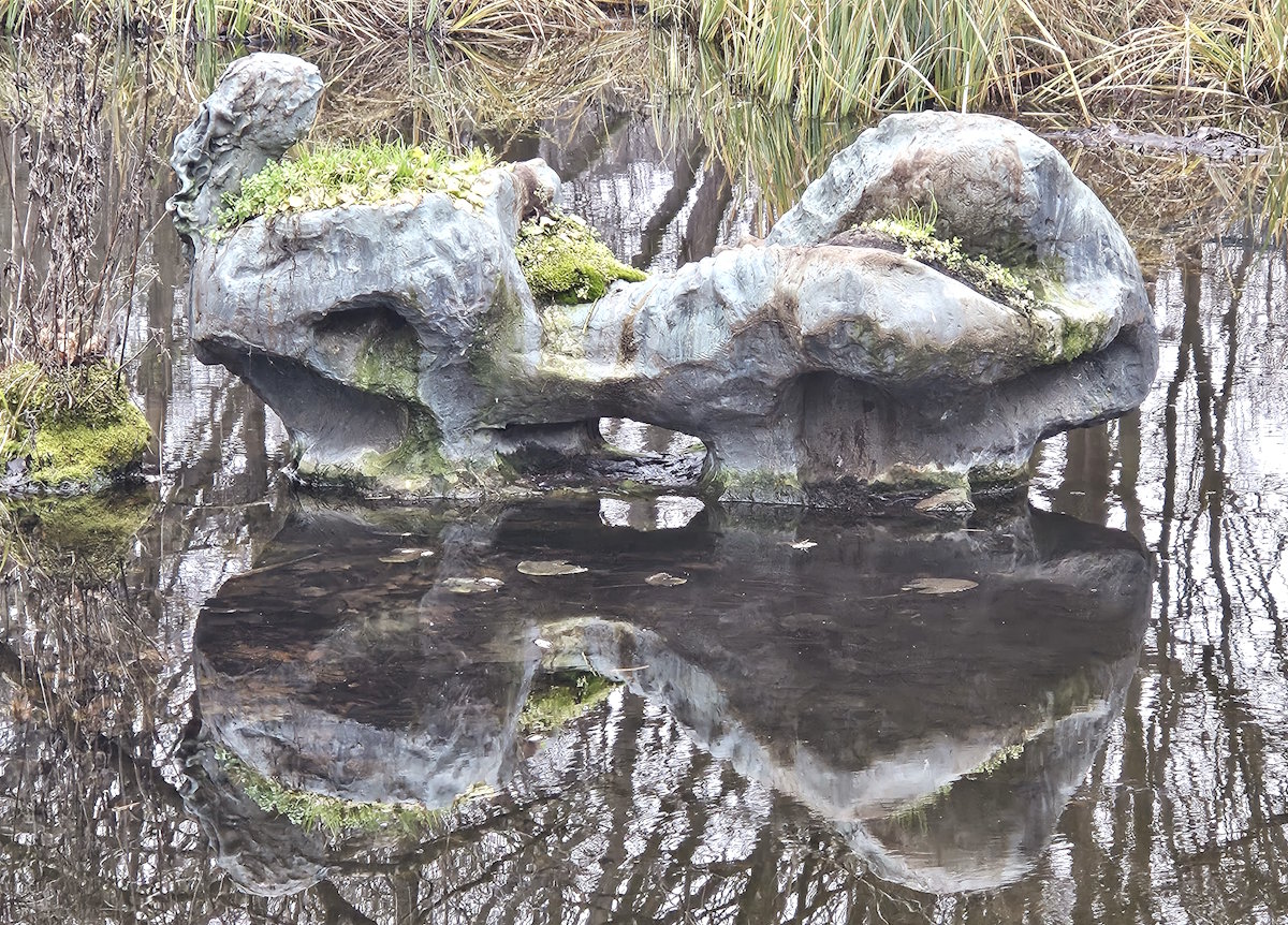An den Bildhauer Fritz Koenig* (1924 – 2017), dessen »Große Kugelkaryatide N. Y.« (heute: »The Sphere« bzw. »9/11«) vor dem World Trade Center in New York weltberühmt ist, erinnern in München mehrere Kunstwerke im öffentlichen Raum, darunter die »Große Torfigur 1985« im Tucherpark. ‒ Die Windhunde wurden 1897 von dem französischen Künstler und Bildhauer Octave Galliard-Sansonetti* (1865 – 1924) gechaffen. ‒ Toni Stadler* (1888 ‒ 1982) schuf 1964 die Figur »Große Liegende Ägäis«, offenbar in mehreren Exemplaren. Eines davon ist im Seerosenteich des Tucherparks zu finden.