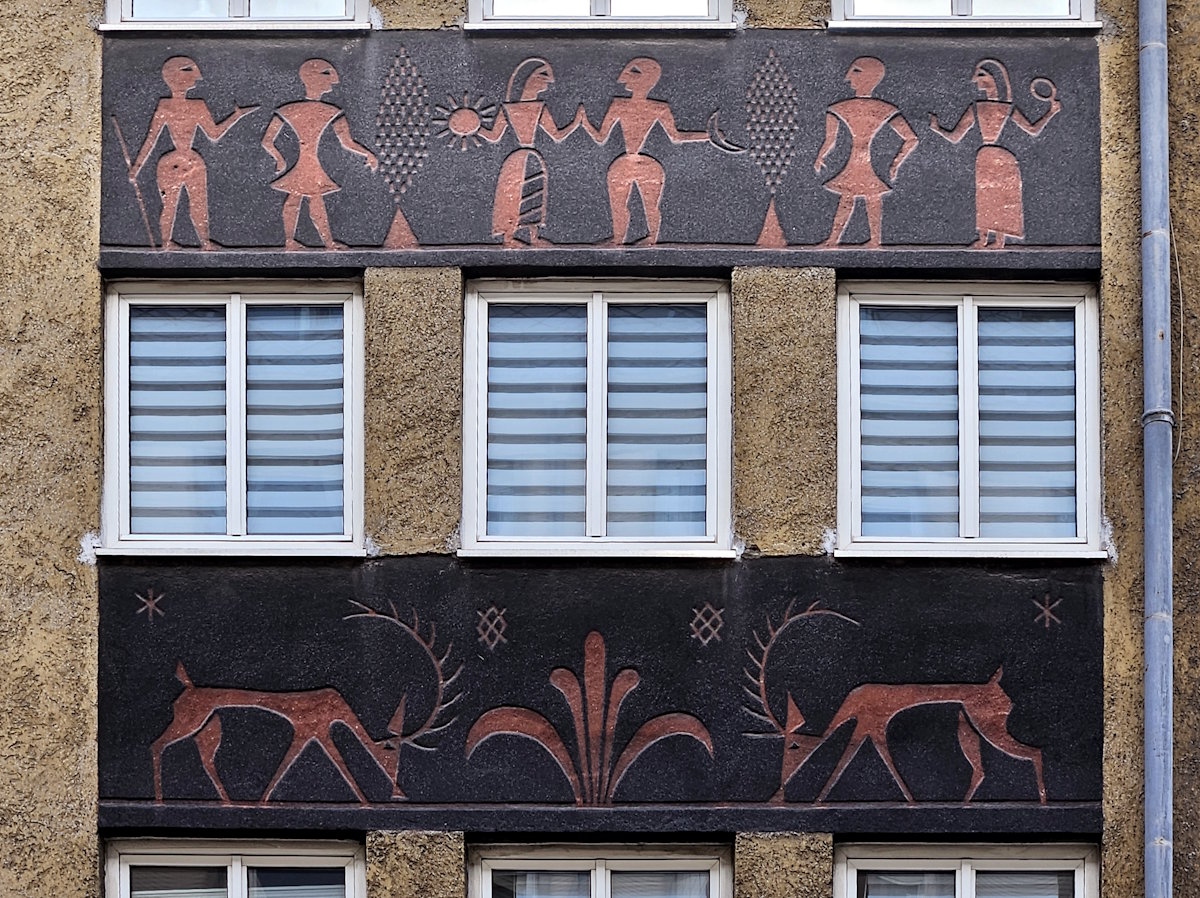 Der Jugendstil-Häuserblock Gedonstraße 4‒6 wurde 1904 von Martin Dülfer (1859 – 1942) gestaltet, einem der bedeutenden Vertreter des Historismus und der Jugendstil-Architektur.