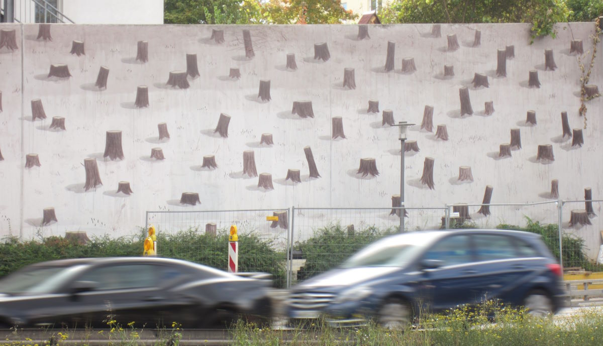 Kurz vor der östlichen Einfahrt zum Heckenstaller Tunnel befindet sich seit 2019 das 15×13 Meter große Mural »We The Forest« des Spaniers ESCIF.