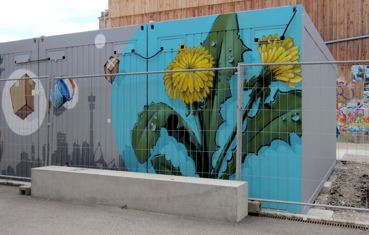 Von der Subkultur-Szene motiviert, wurden auch Baucontainer in der Tumblingerstraße bemalt.