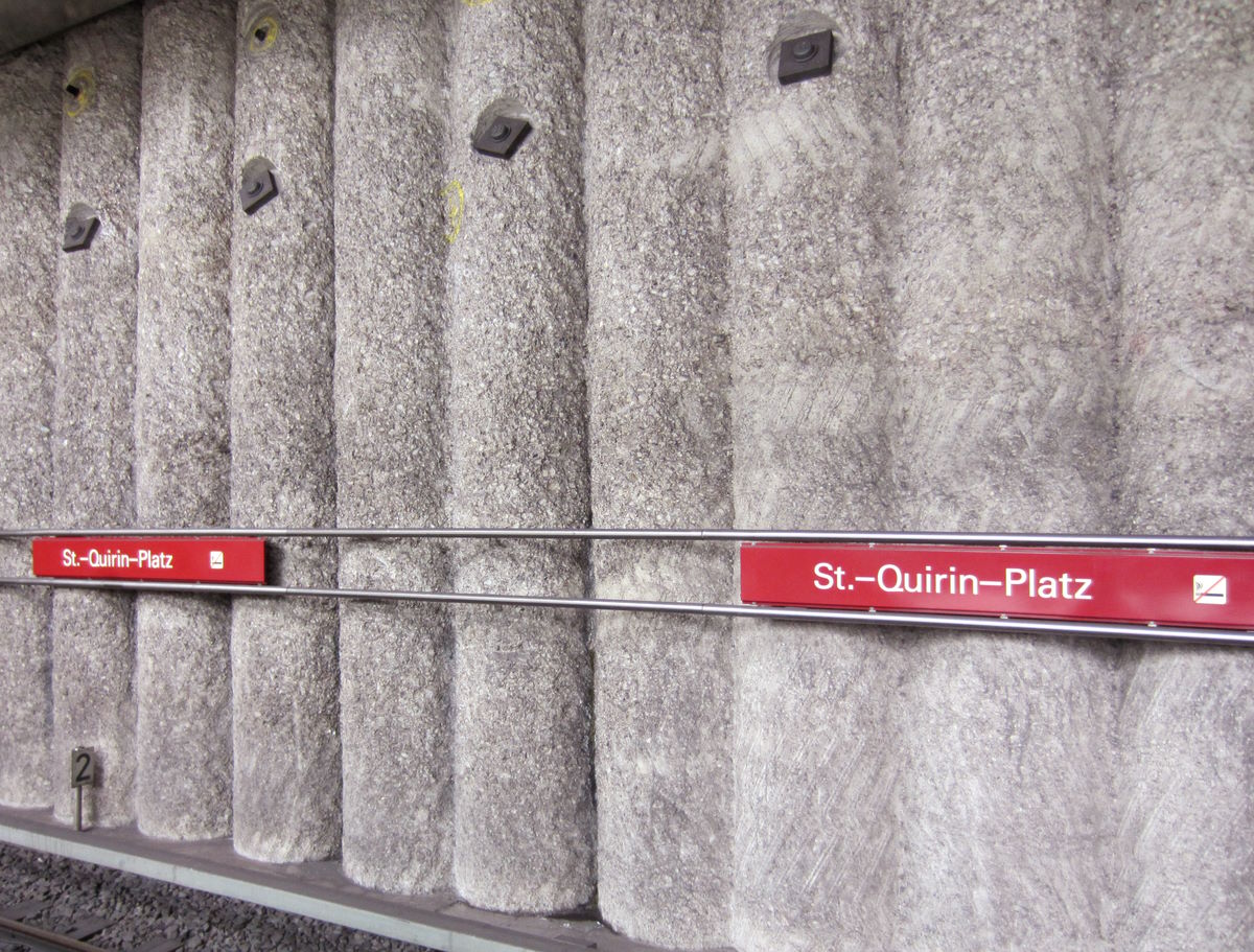 Der 1997 eröffnete U-Bahnhof St.-Quirin-Platz in Untergiesing wurde von Paul Kramer (U-Bahn-Referat) in Zusammenarbeit mit dem Ingenieurbüro Ulrich Elsner geplant. Die muschelförmige Dachkonstruktion aus Glas ist einzigartig. Die Hintergleiswände bestehen aus unbehandelten Bohrpfählen, in denen noch die Rückverankerungen zu sehen sind.