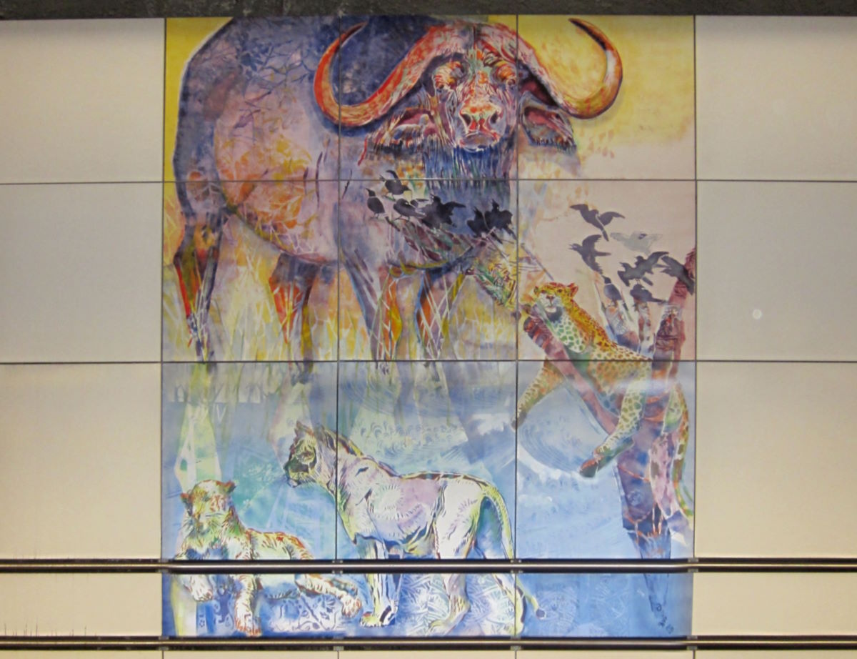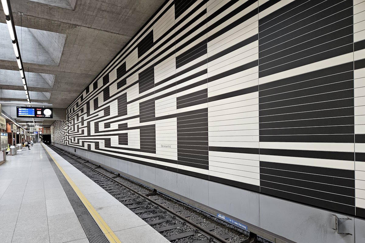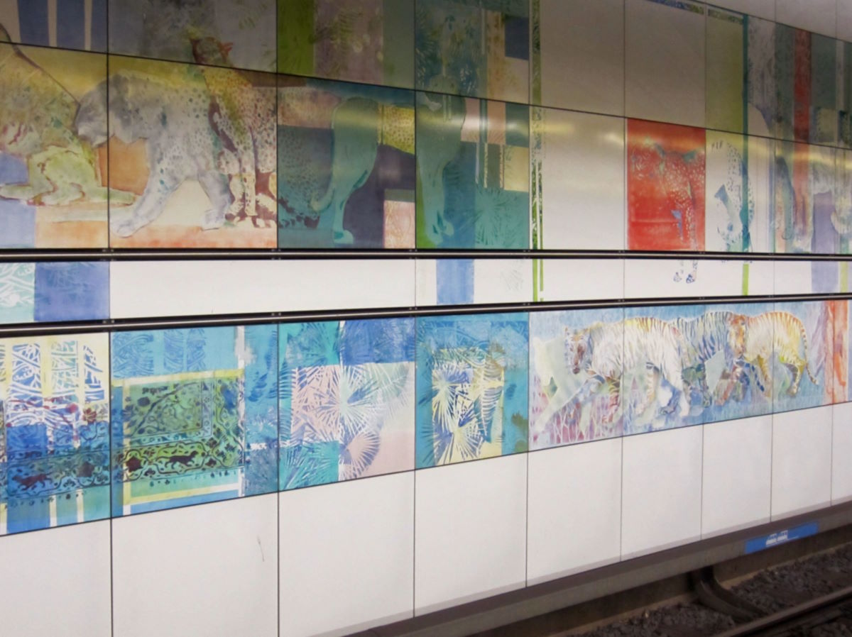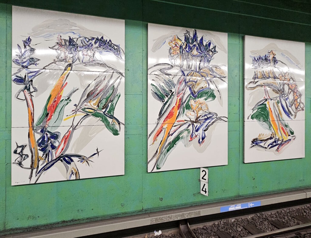 Ricarda Dietz und Michael Braun entwarfen die Mosaikwände des U-Bahnhofs Frankfurter Ring unter der Kreuzung Knorrstraße / Frankfurter Ring in Milbertshofen.