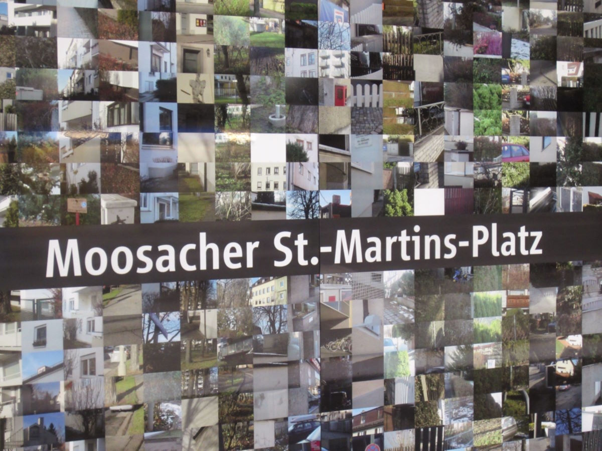Die Hintergleiswände des 2010 fertiggestellten Bahnsteigs hat der japanische Künstler Masayuki Akiyoshi (*1968) mit 76.200 Fotos im Format von 15×11 Zentimetern verkleidet, die er während eines Jahres in der Umgebung von Moosach aufgenommen hatte.