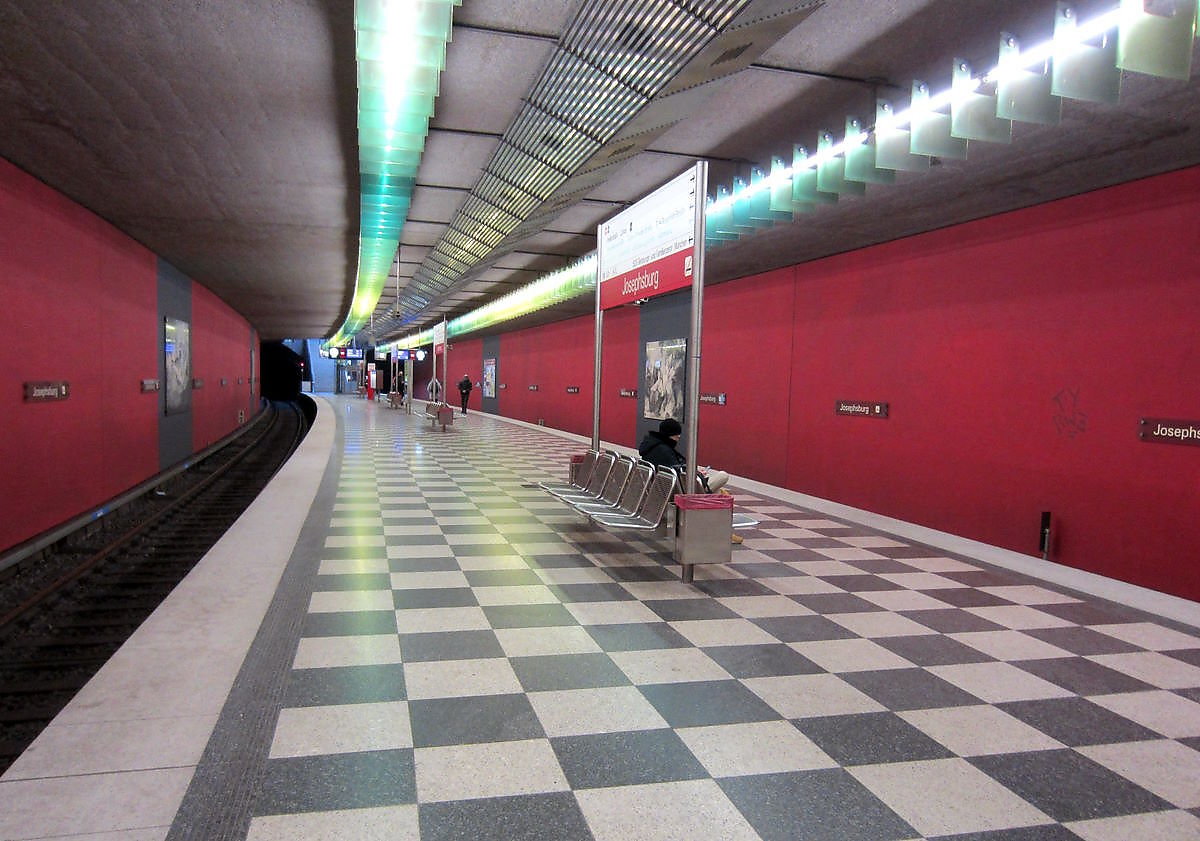 Paul Kramer und Manfred Rossiwal vom städtischen Baureferat planten den im Mai 1999 eröffneten U-Bahnhof Josephsburg. An den Hintergleiswänden hängen von Roman Lorusso bearbeitete und auf Glasscheiben gedruckte Abbildungen von Werken des Barockmalers Johann Baptist Zimmermann (1680 – 1758) aus der → St. Michaels-Kirche in Berg am Laim.