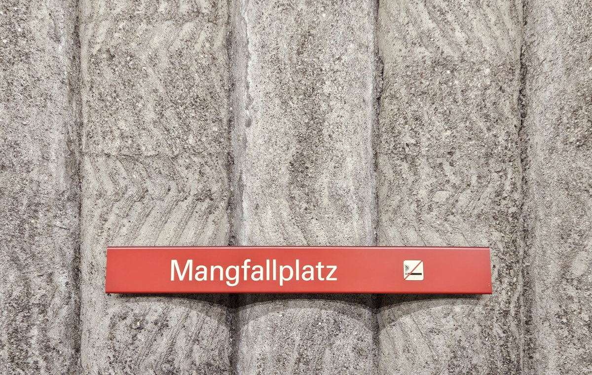 Der U-Bahnhof Mangfallplatz in Neuharlaching wurde vom U-Bahnreferat in Zusammenarbeit mit dem Architekten Paolo Nestler (1920 – 2010) geplant. Die Bohrpfahl-Betonwände hinter den Gleisen sind nicht senkrecht, sondern weiten den Raum nach unten. Das blaue Bild an der nördlichen Hintergleiswand bezieht sich auf den Namen des Bahnhofs: aus dem Mangfalltal bezieht München seit 1873 den größten Teil des Trinkwassers.