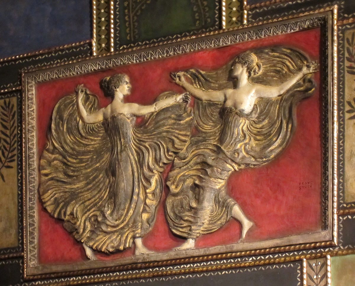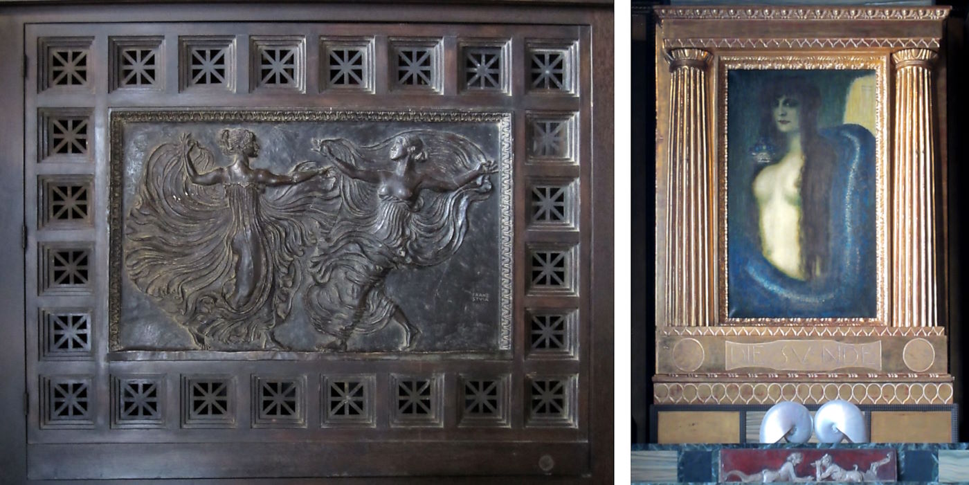 Franz von Stuck (1863 – 1928) ließ sich 1897/98 nach eigenen Entwürfen vom Bauunternehmen Heilmann & Littmann eine neoklassizistische Villa in der Prinzregentenstraße in München-Bogenhausen errichten, die 1914/15 um das »Neue Atelier« erweitert wurde. Die Innenräume gestaltete der »Malerfürst« im Kontrast zu den Jugendstil-Fassaden. Dabei kombinierte Franz von Stuck Stilelemente aus Antike, Byzanz, Orient und Hochrenaissance mit Entwicklungen des späten 19. Jahrhunderts zu einem eigenständigen Gesamtkunstwerk mit theatralischer Wirkung.